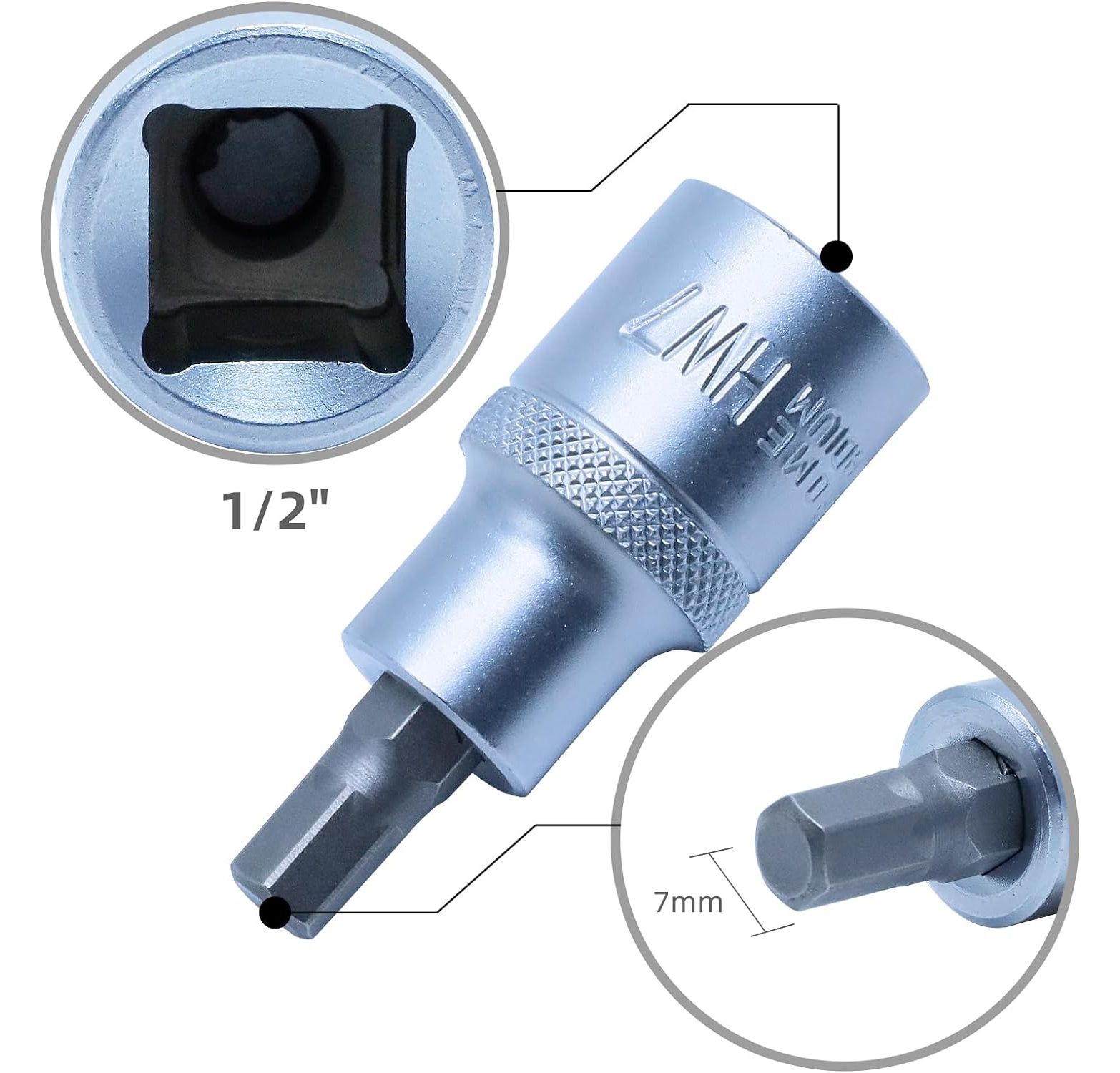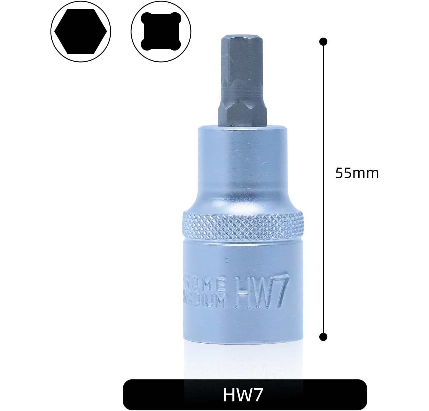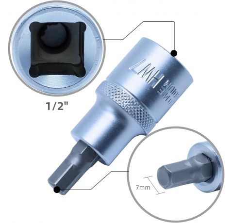 CCLIFE Innensechskant Einsatz 7mm, 1/2" HEX Bit Socket, Sechseckige Steckschlüssel Material CRV, 55mm Länge