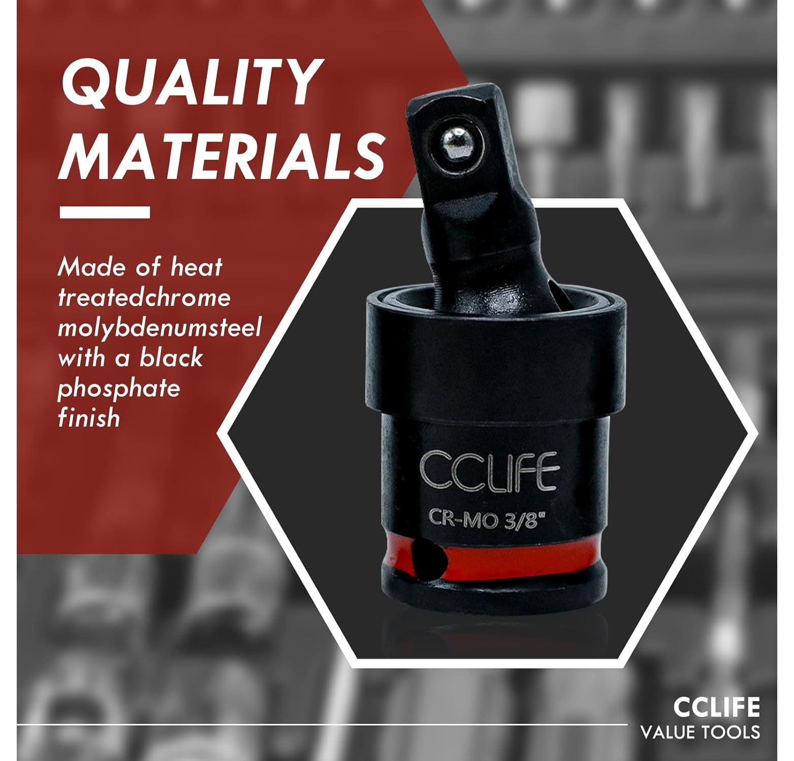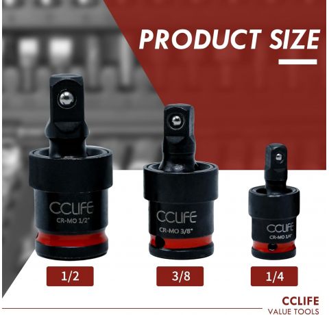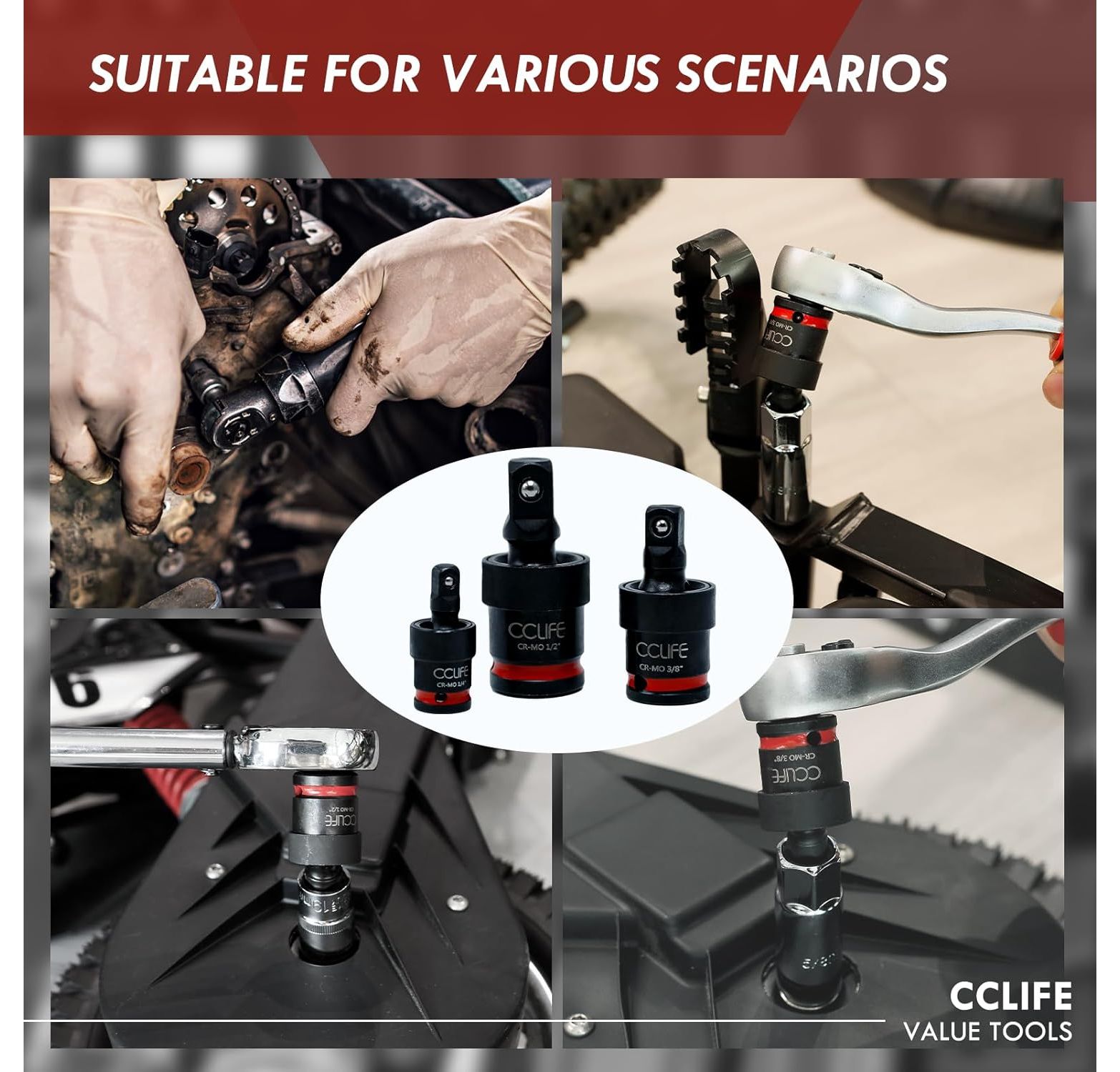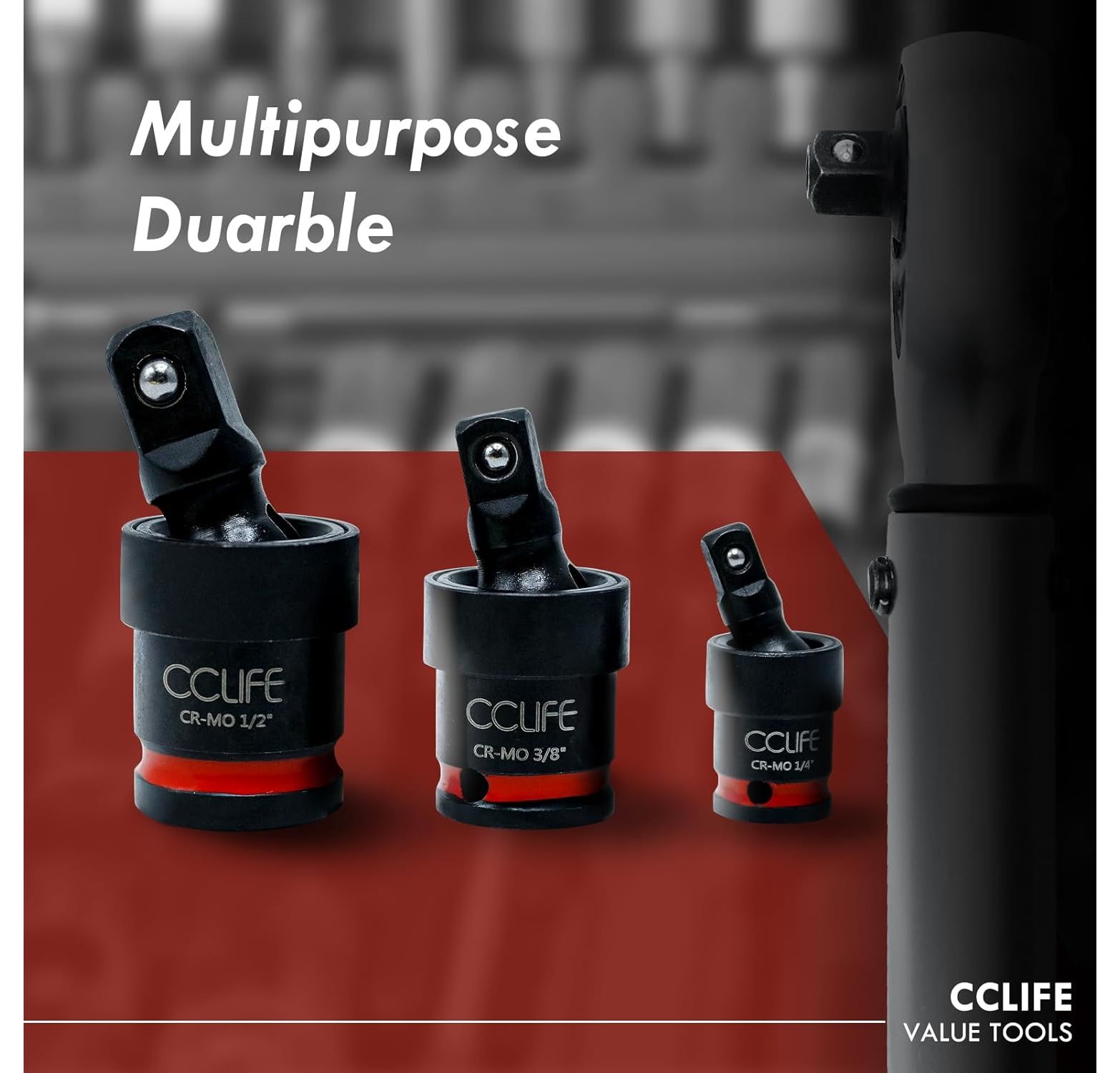 CCLIFE Schlagschrauber Kreuzgelenk Gelenksatz 3tlg Kraft-Kugelgelenk 1/4 3/8 1/2 Zoll Kardangelenk Cr-Mo