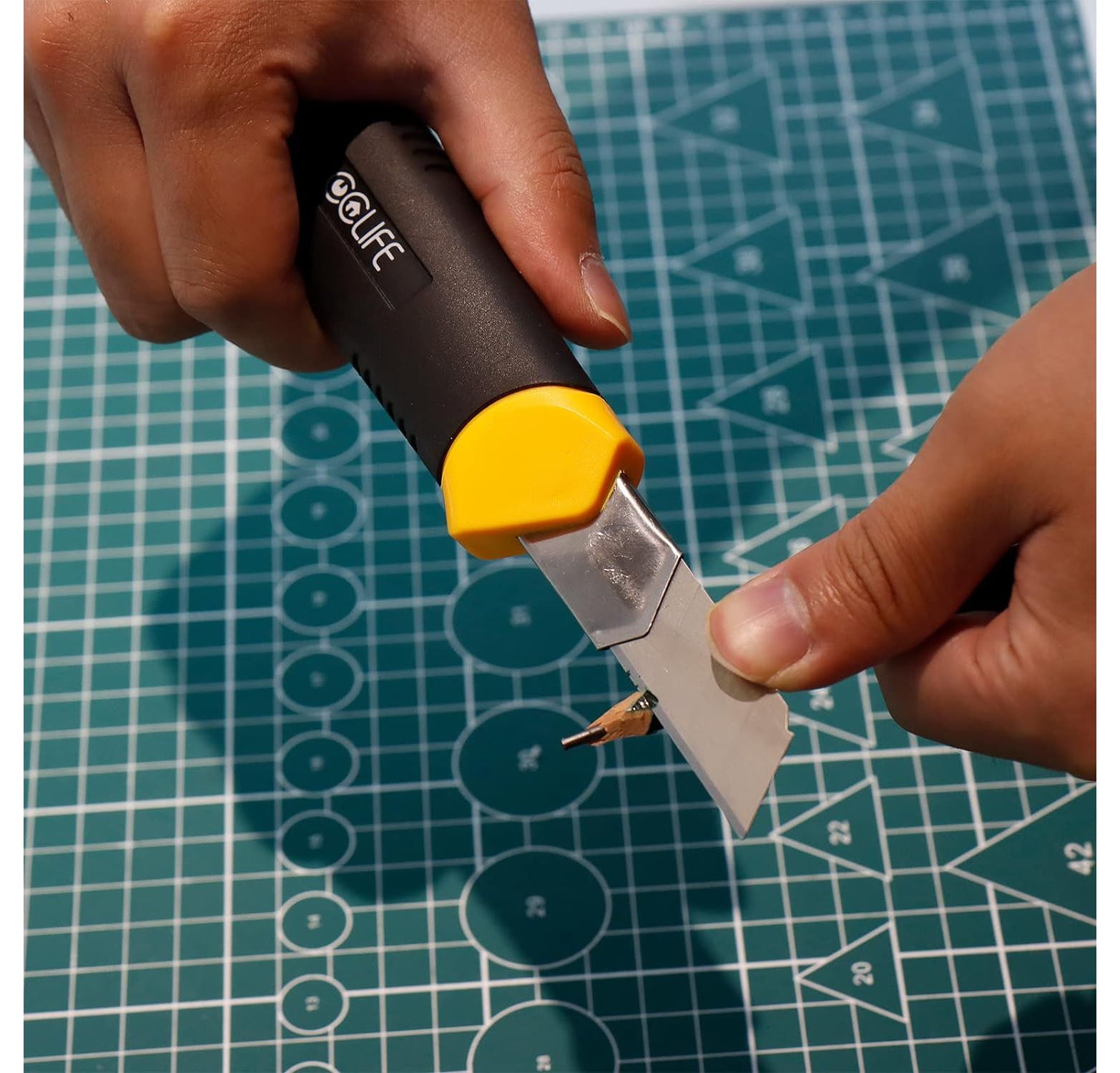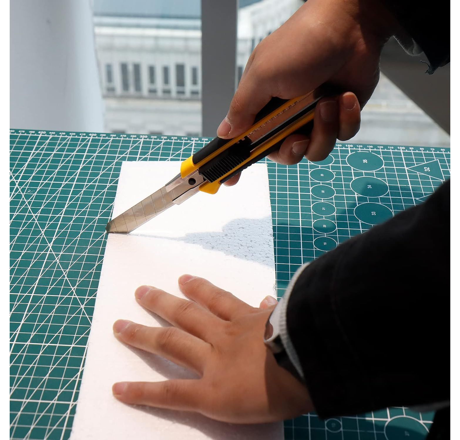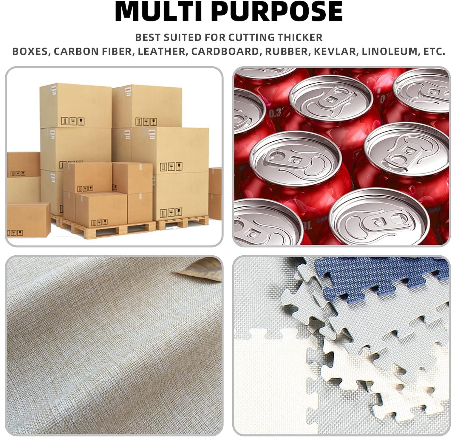 Die Metallführung dieser Allzweckmesser ermöglicht ein müheloses Schneiden von Materialien verschiedener Dicke, von Karton über Teppiche bis hin zu einer Vielzahl anderer Werkstoffe. Das ergonomische und rutschfeste Griffdesign sorgt dabei für eine komfortable Handhabung selbst bei langen Arbeitssitzungen.