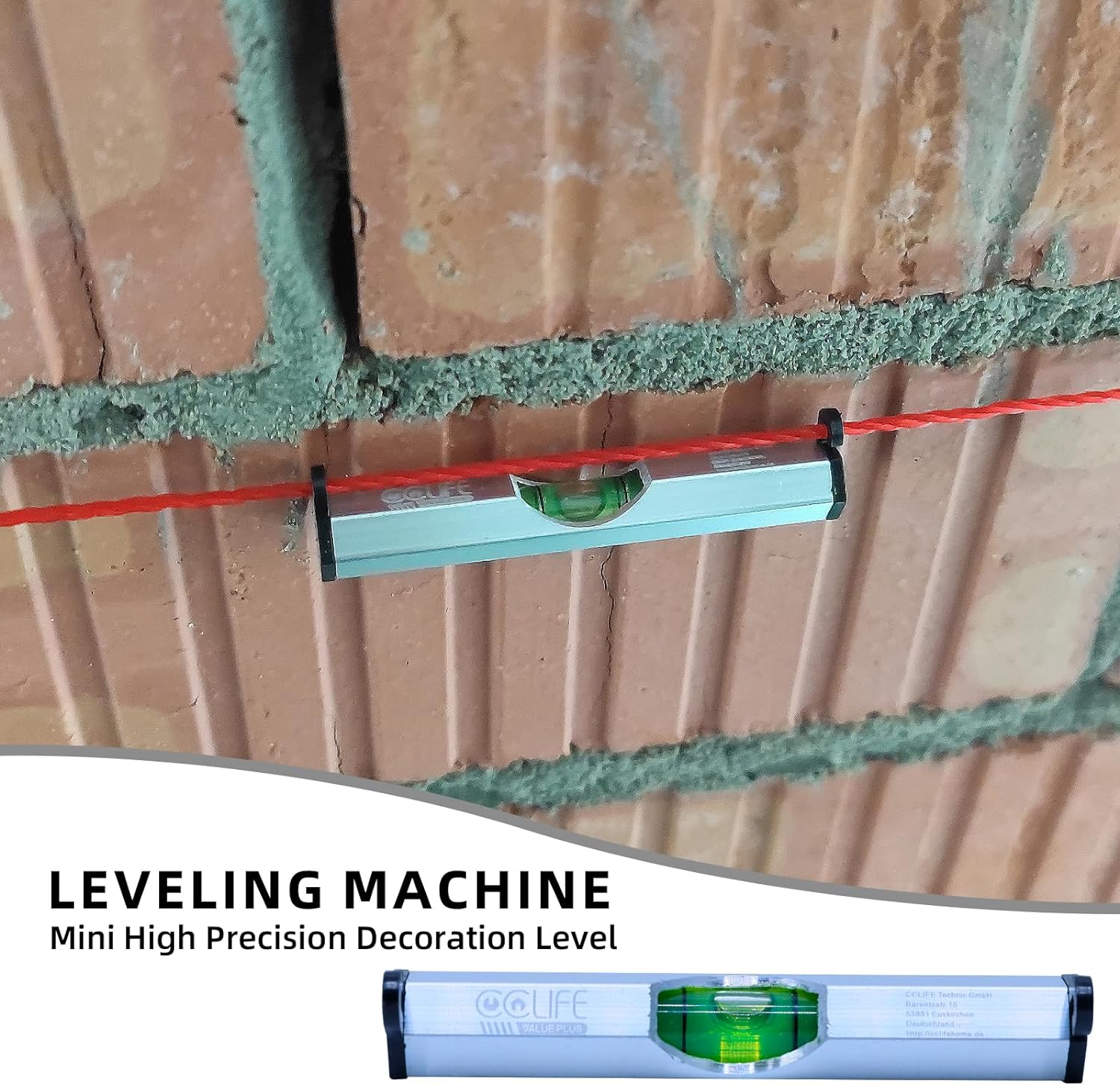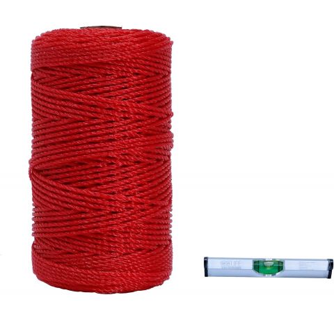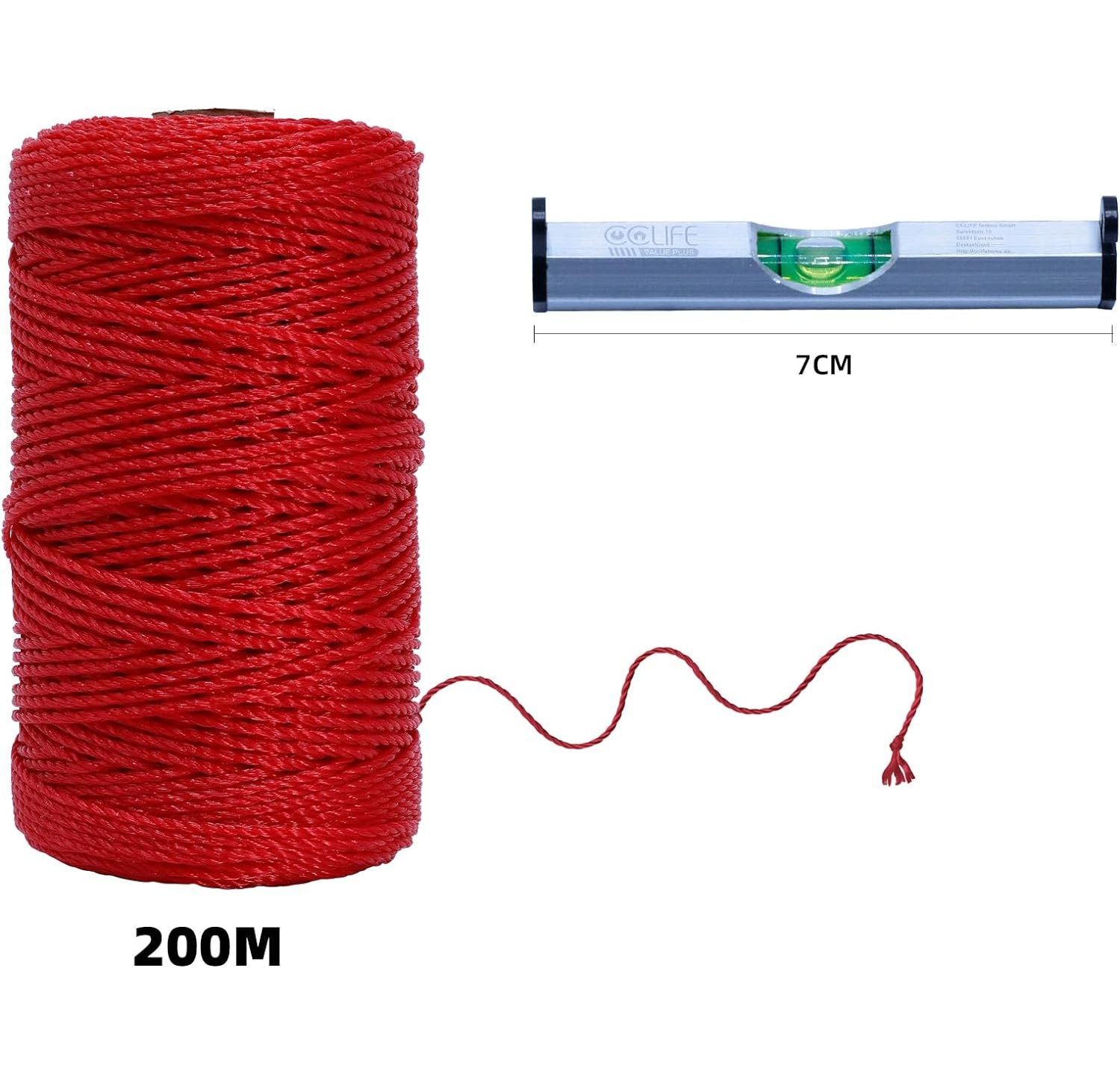 CCLIFE Maurerschnur Rot 200m Länge, Ø 2mm und Wasserwaagen für Maurerarbeiten Auf Spule Richtschnur Bauschnur Lotschnur Pflasterschnur