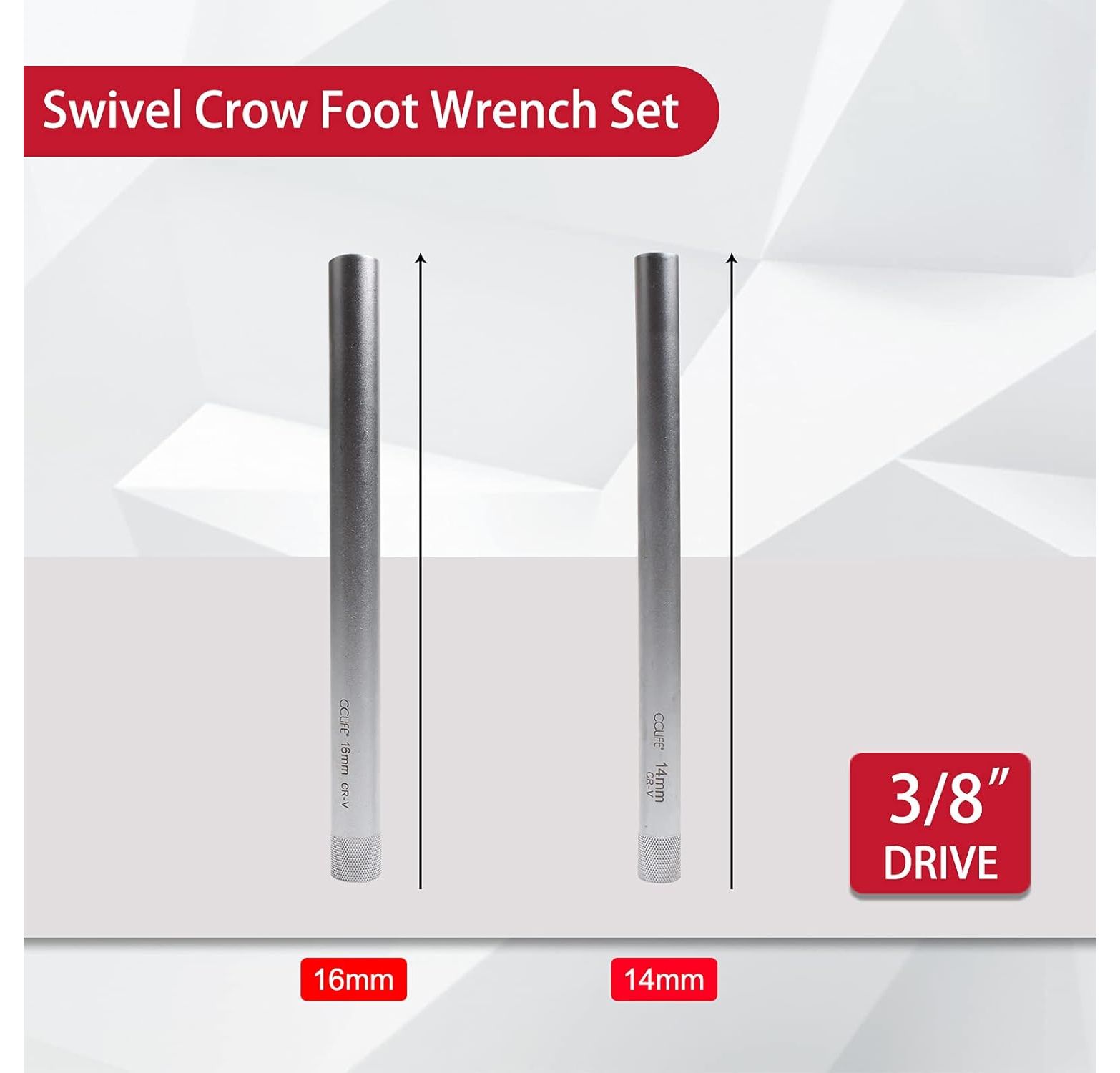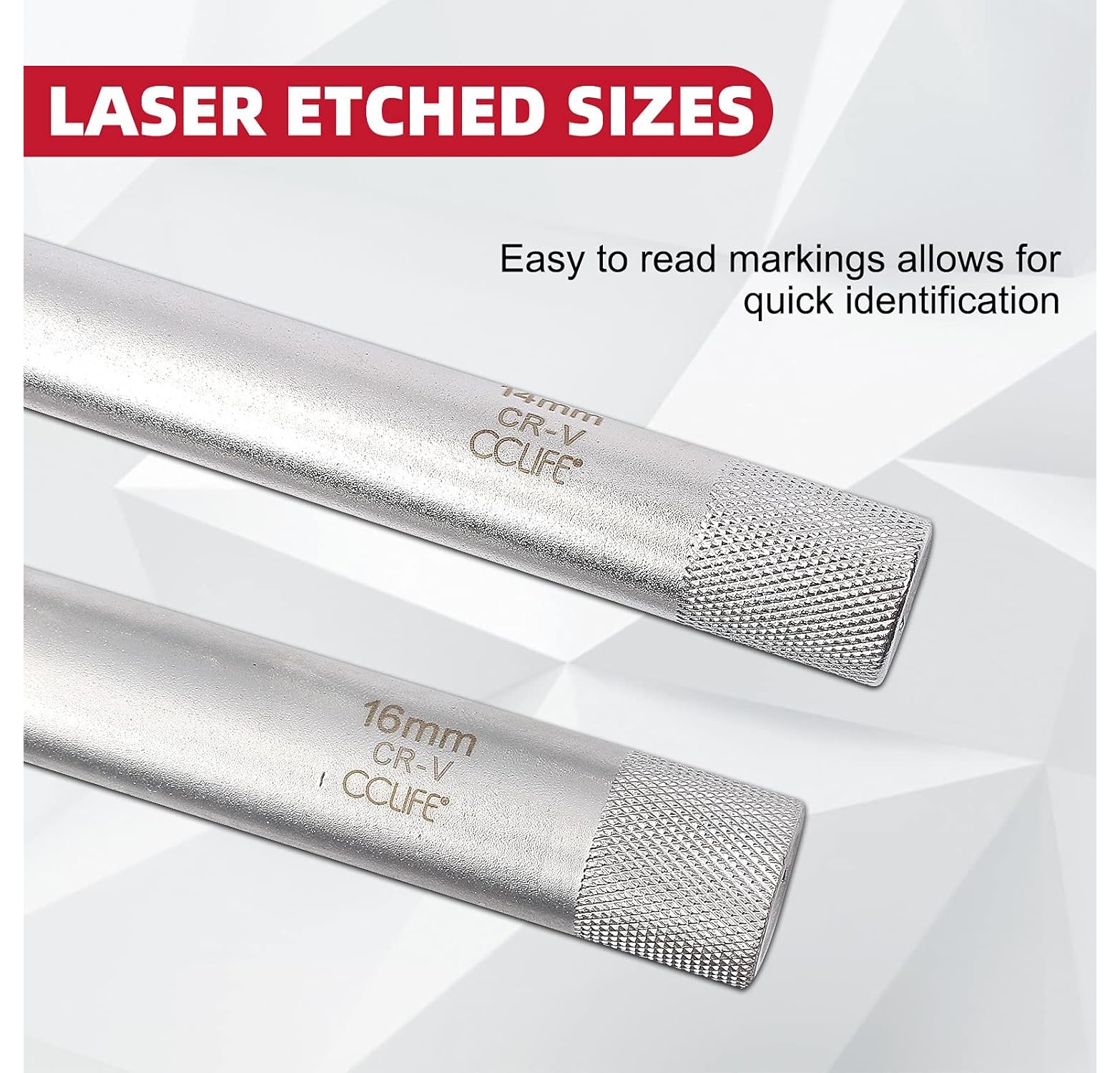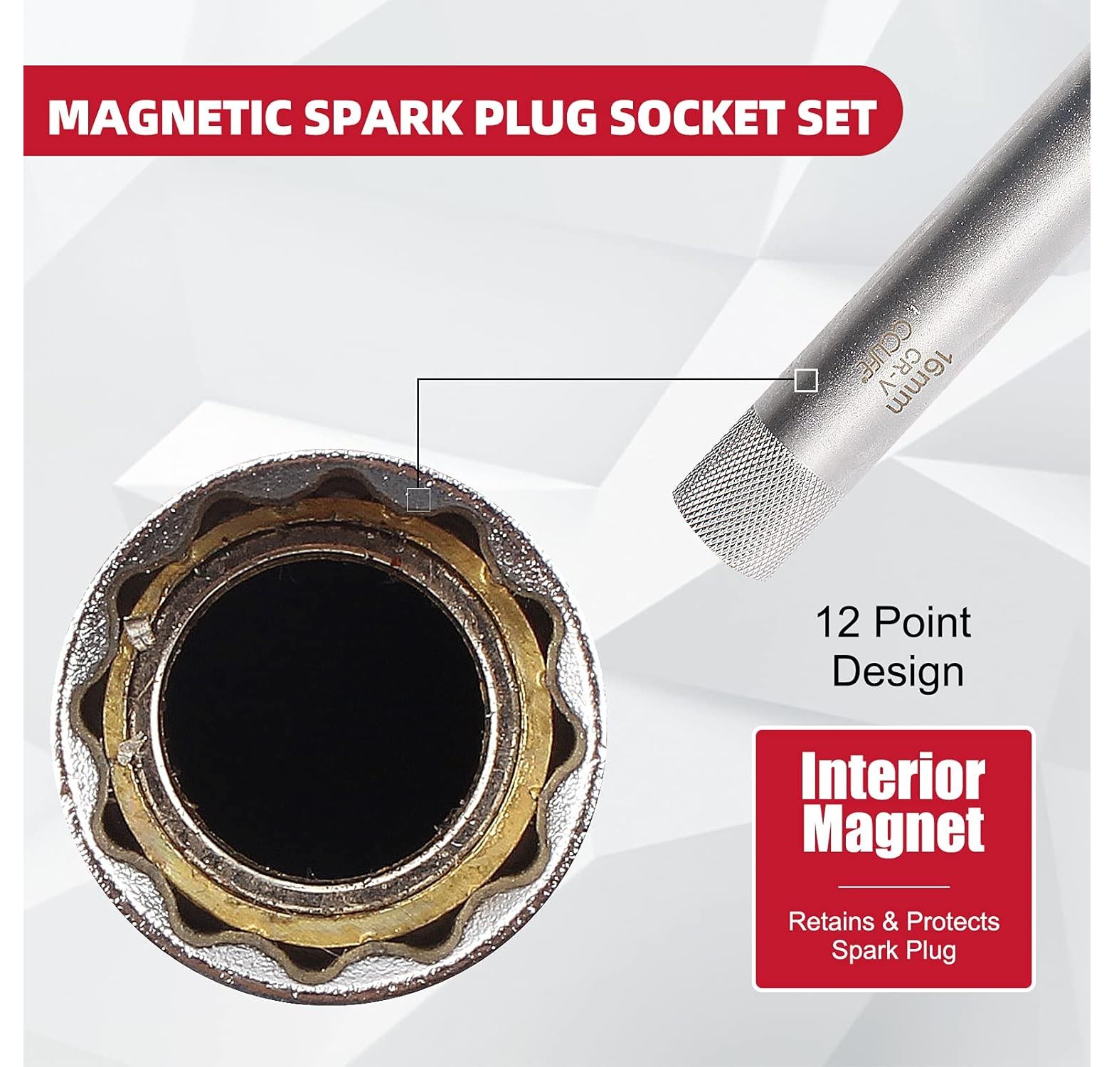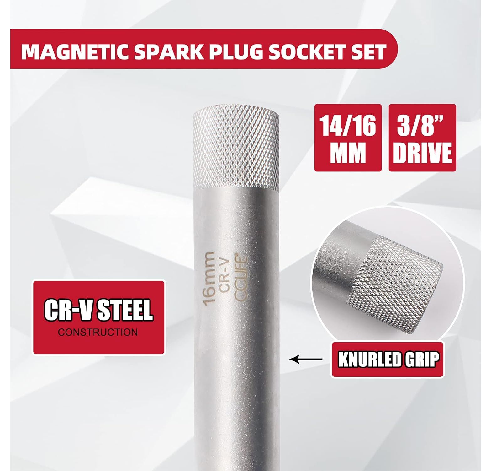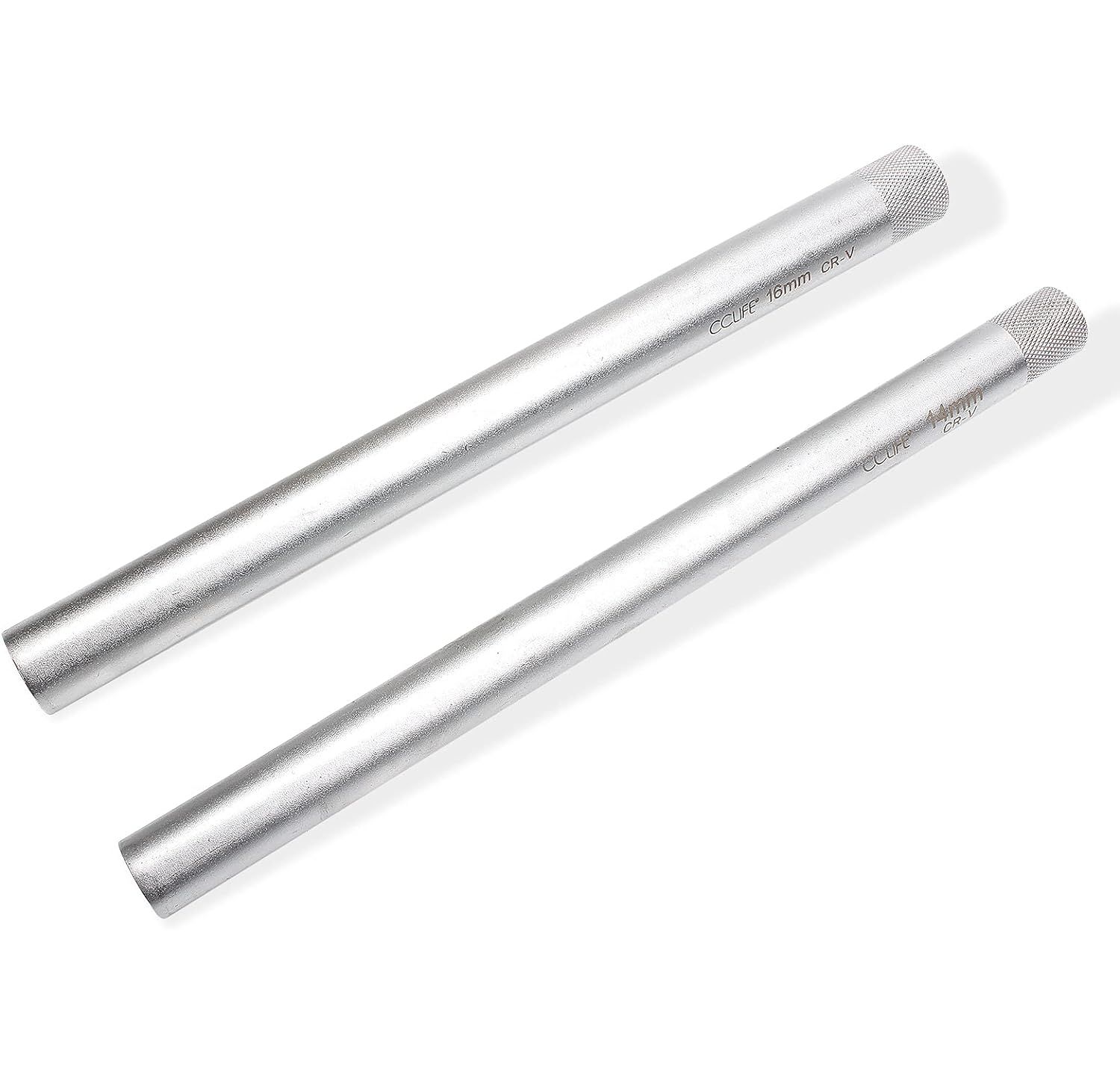 CCLIFE 2-Piece Magnetic Spark Plug Wrench 3/8 Inch Spark Plugs Glow Plug Key Insert Tool SW 14 mm 16 mm Extra Long 250 mm