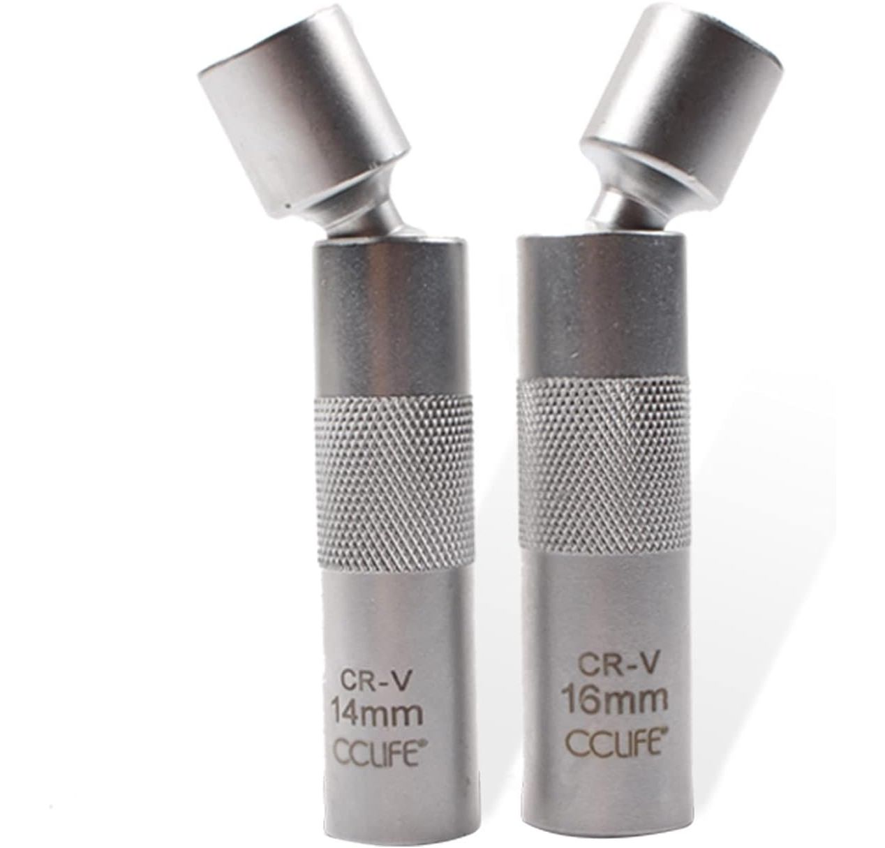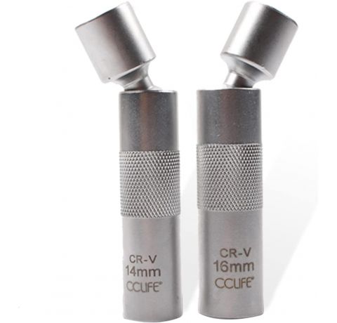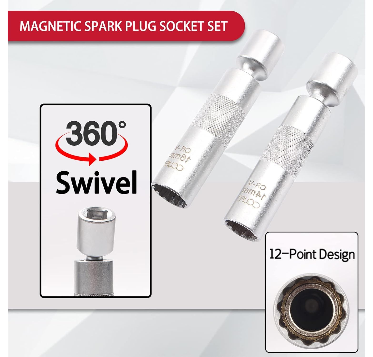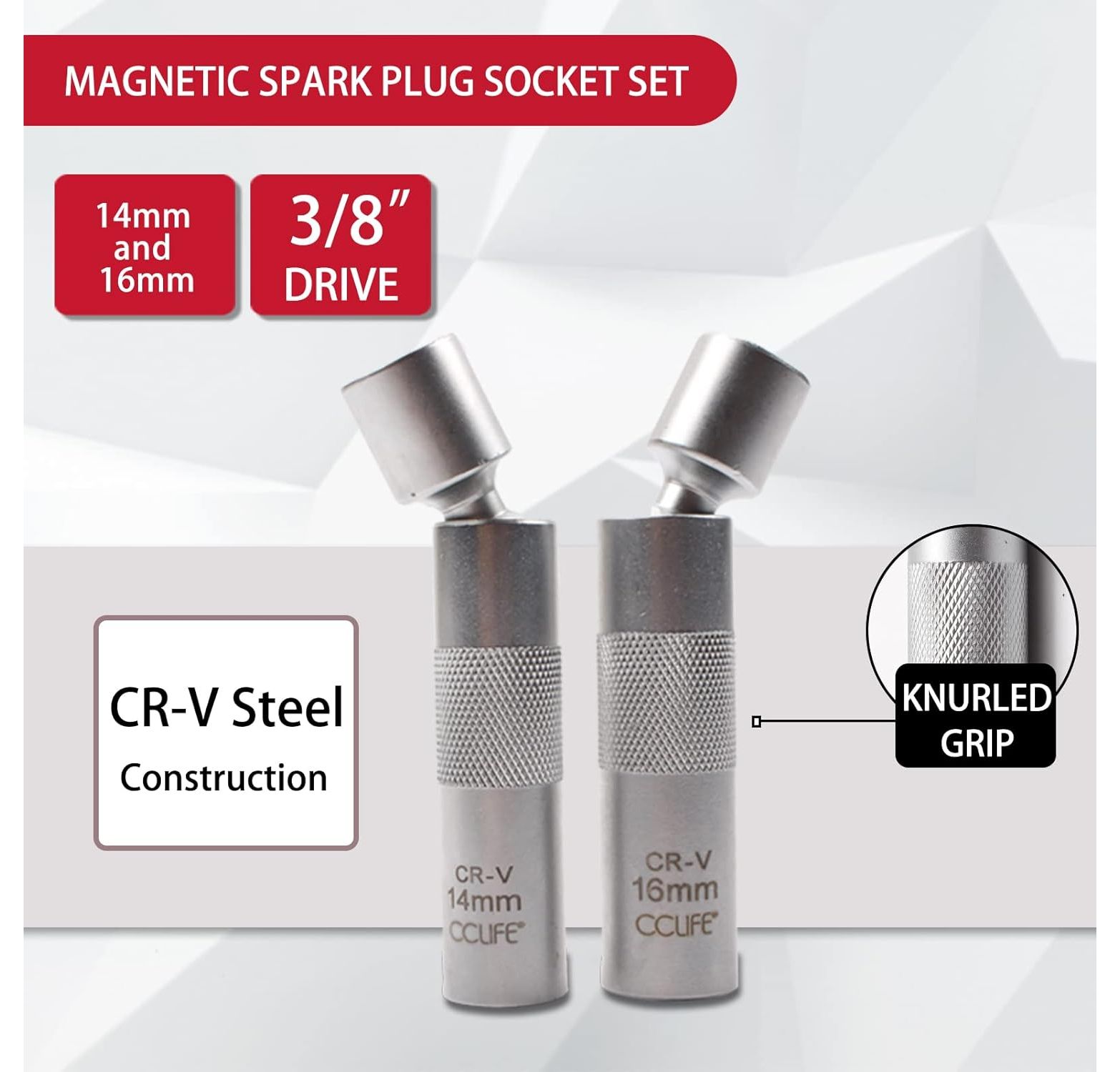 CCLIFE 2-Piece Magnetic Spark Plug Wrench 3/8 Inch Spark Plugs Glow Plugs Joint Key Insert Tool SW 14 mm 16 mm