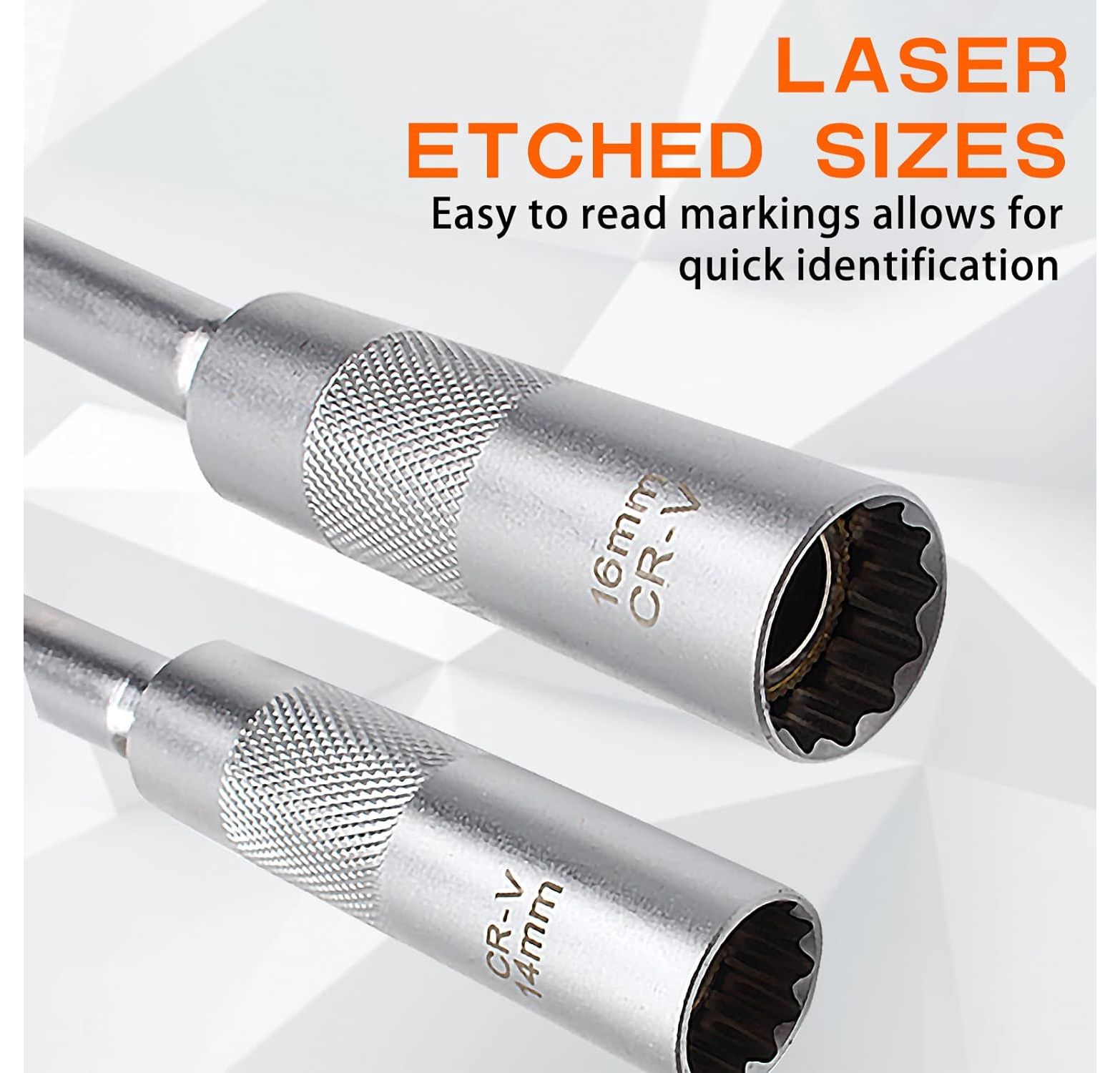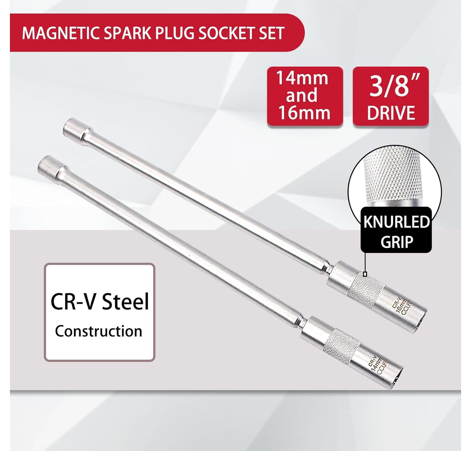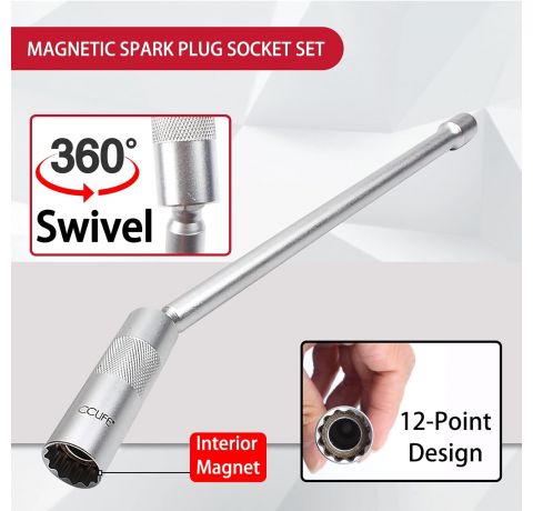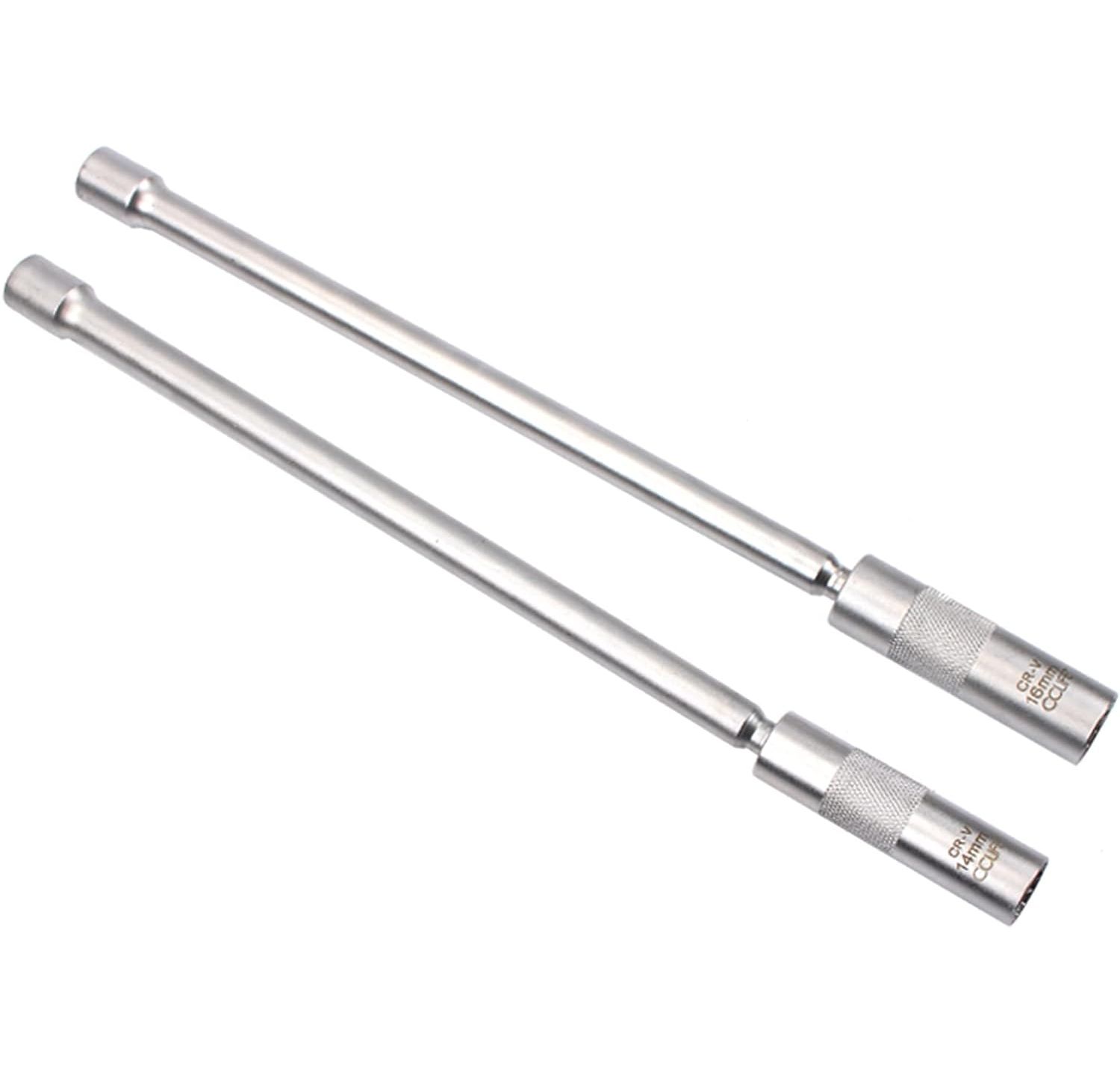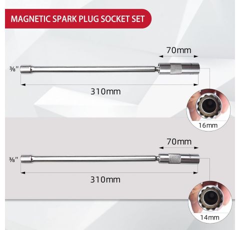 CCLIFE 2-Piece Magnetic Spark Plug Wrench 3/8 Inch Spark Plugs Glow Plugs Joint Key Insert Tool SW 14 mm 16 mm Extra Long 310 mm