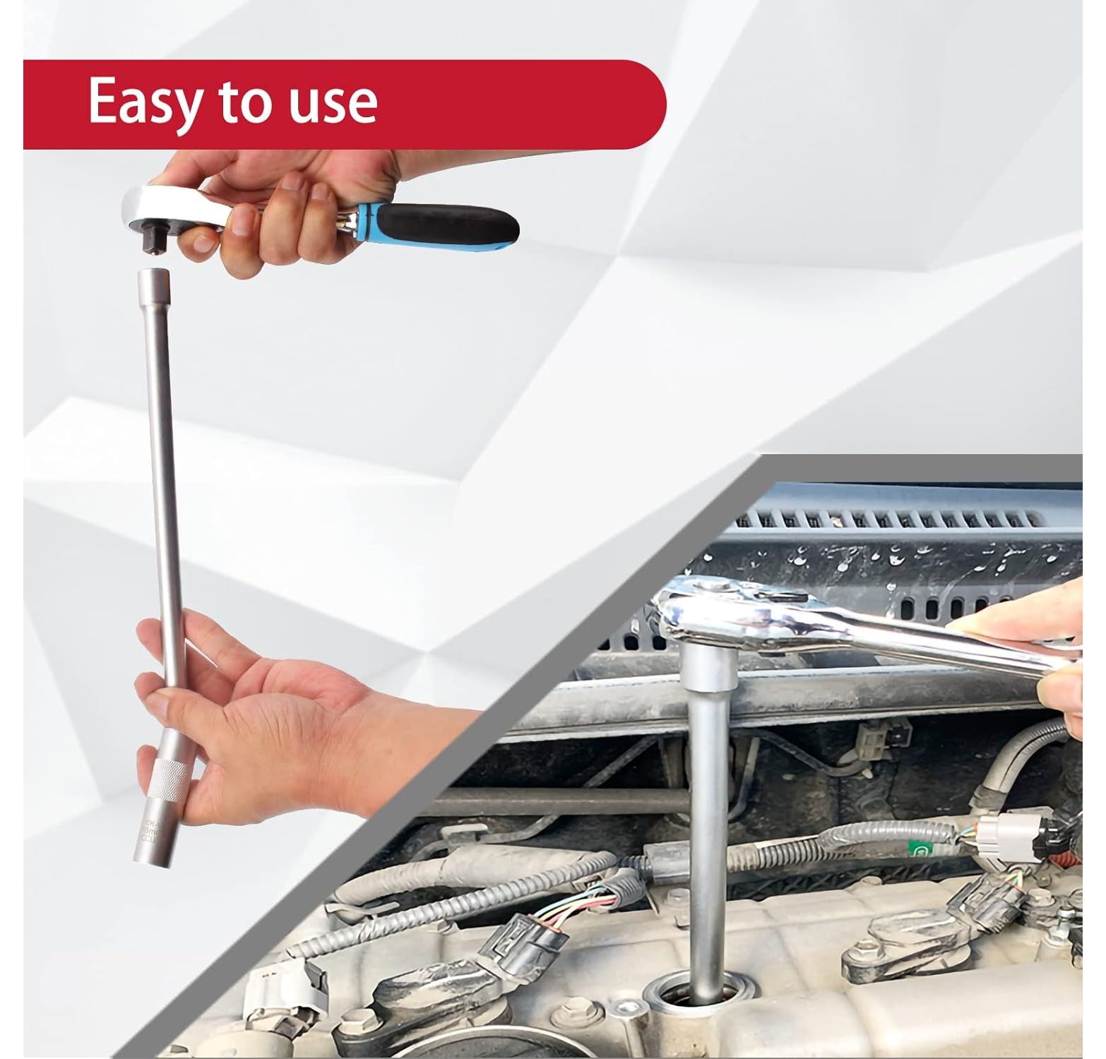 - With extra length 310 mm and ball joint allows easy installation and removal of deep-seated ignition and glow plugs