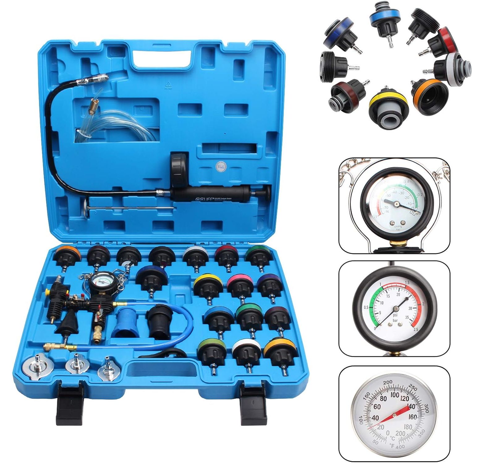 CCLIFE 28-Piece Tester and Filling Kit for Cooling System, Cooler Pressure, Vacuum Cooling System, Water Tank Leak Detector