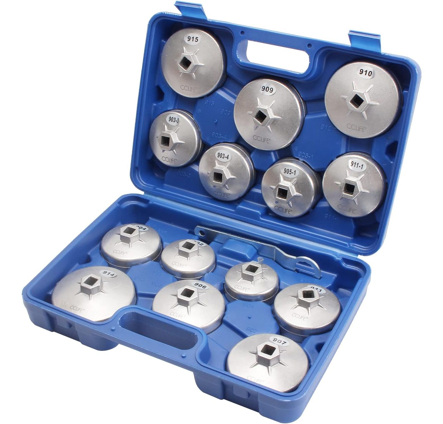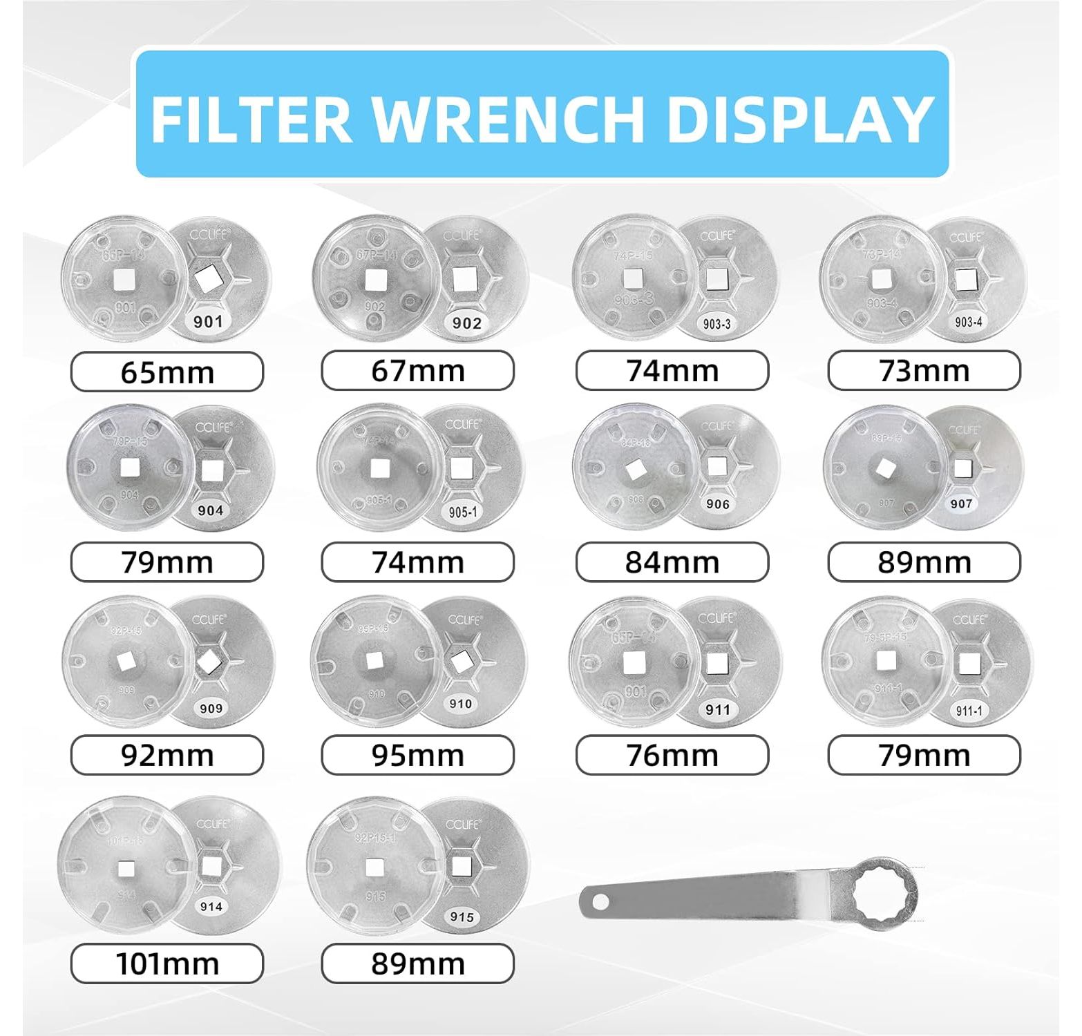 CCLIFE 15-Piece Aluminium Oil Filter Caps Set Oil Filter Wrench Die-Cast Oil Filter Cap Wrench 65-101 mm Oil Change Car Tool