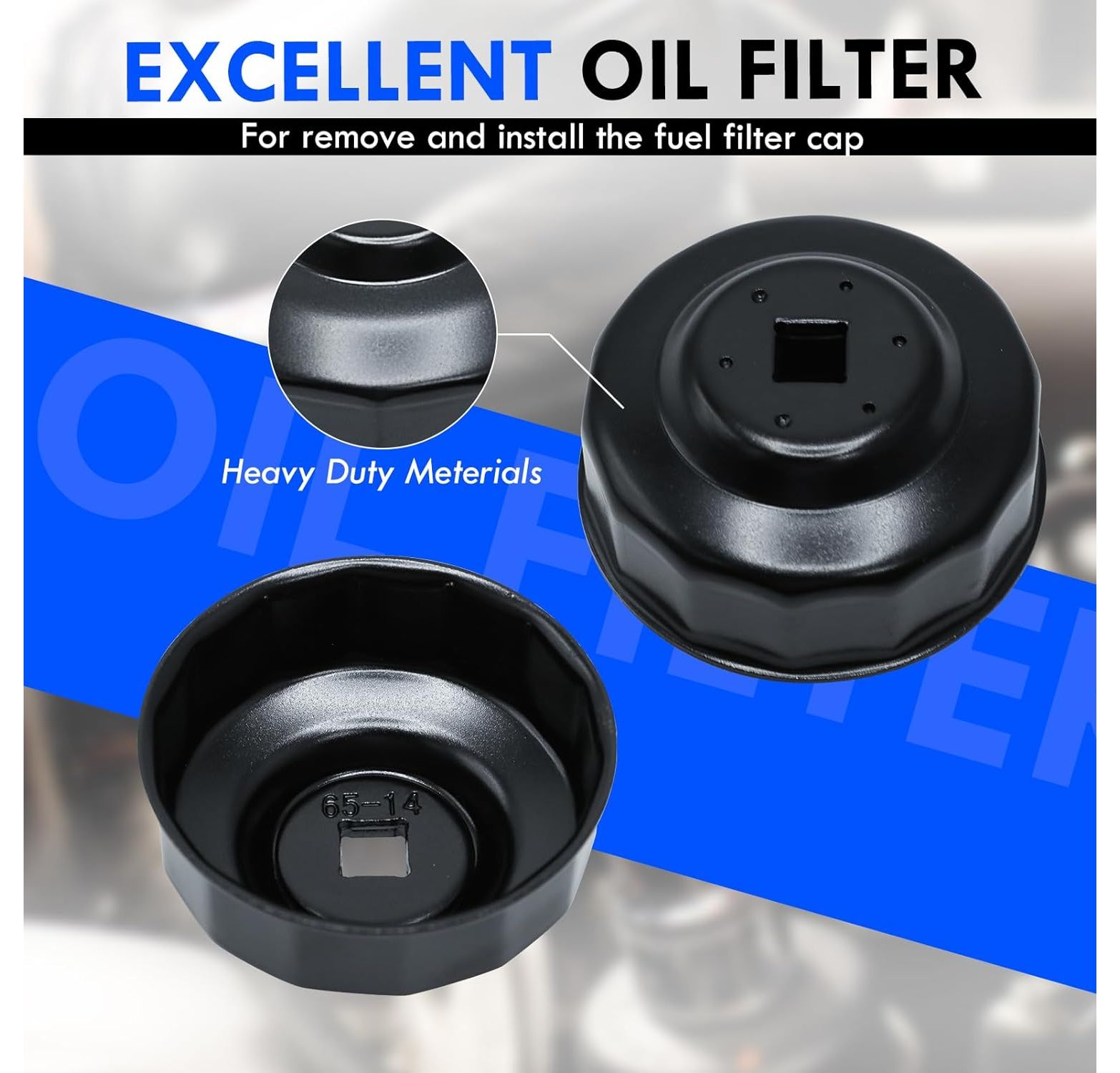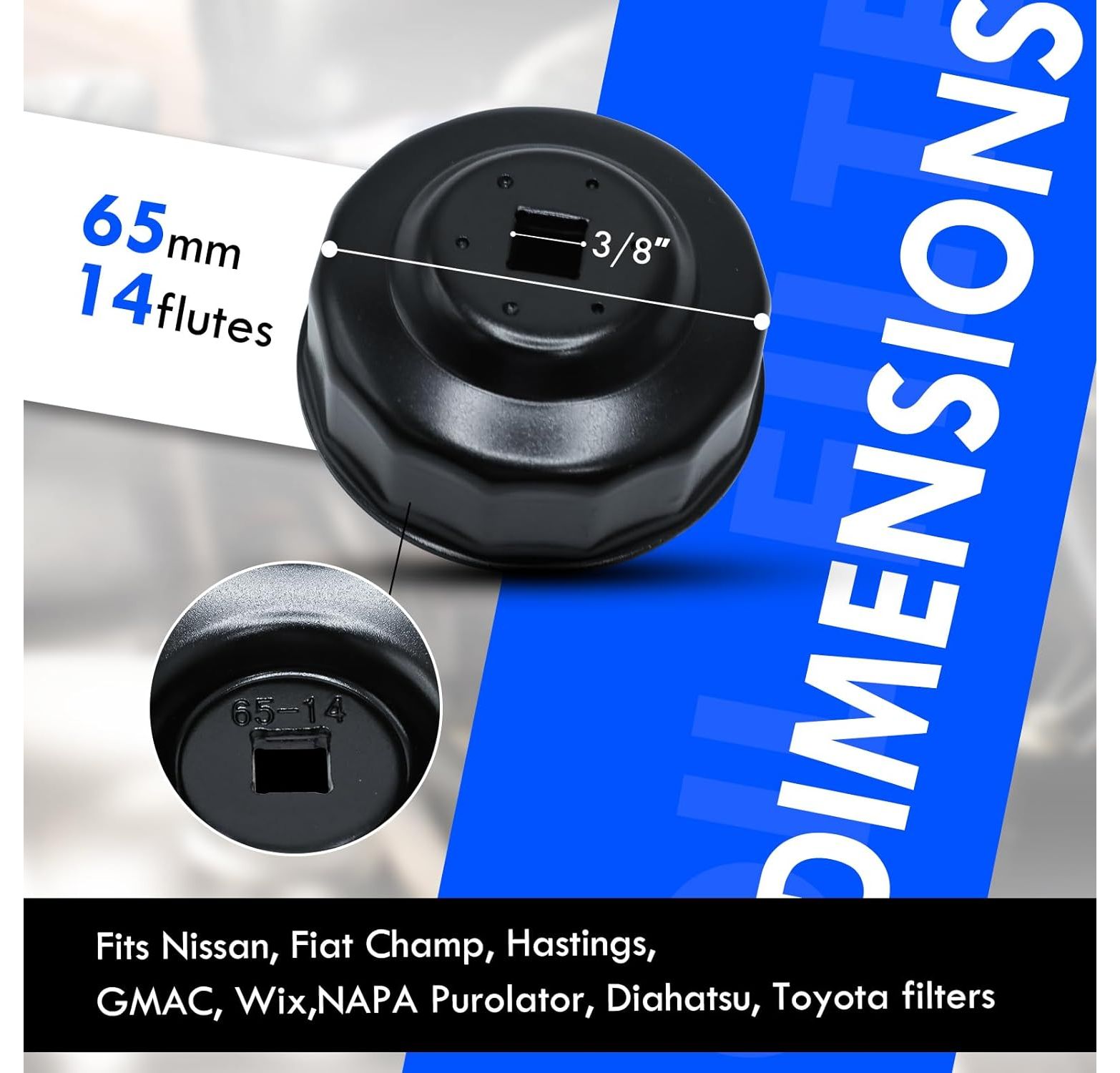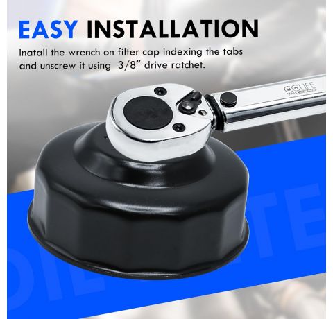 CCLIFE 65 mm Oil Filter Wrench 3/8 Inch Oil Filter Caps Oil Filter Tool Car 14-Point