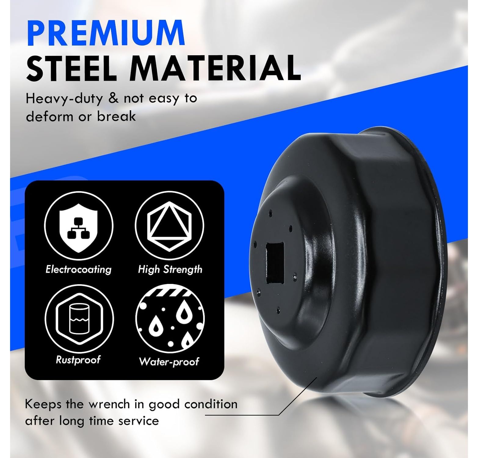 - 14-sided oil filter caps, painted black, made of chrome vanadium steel, 65 mm
