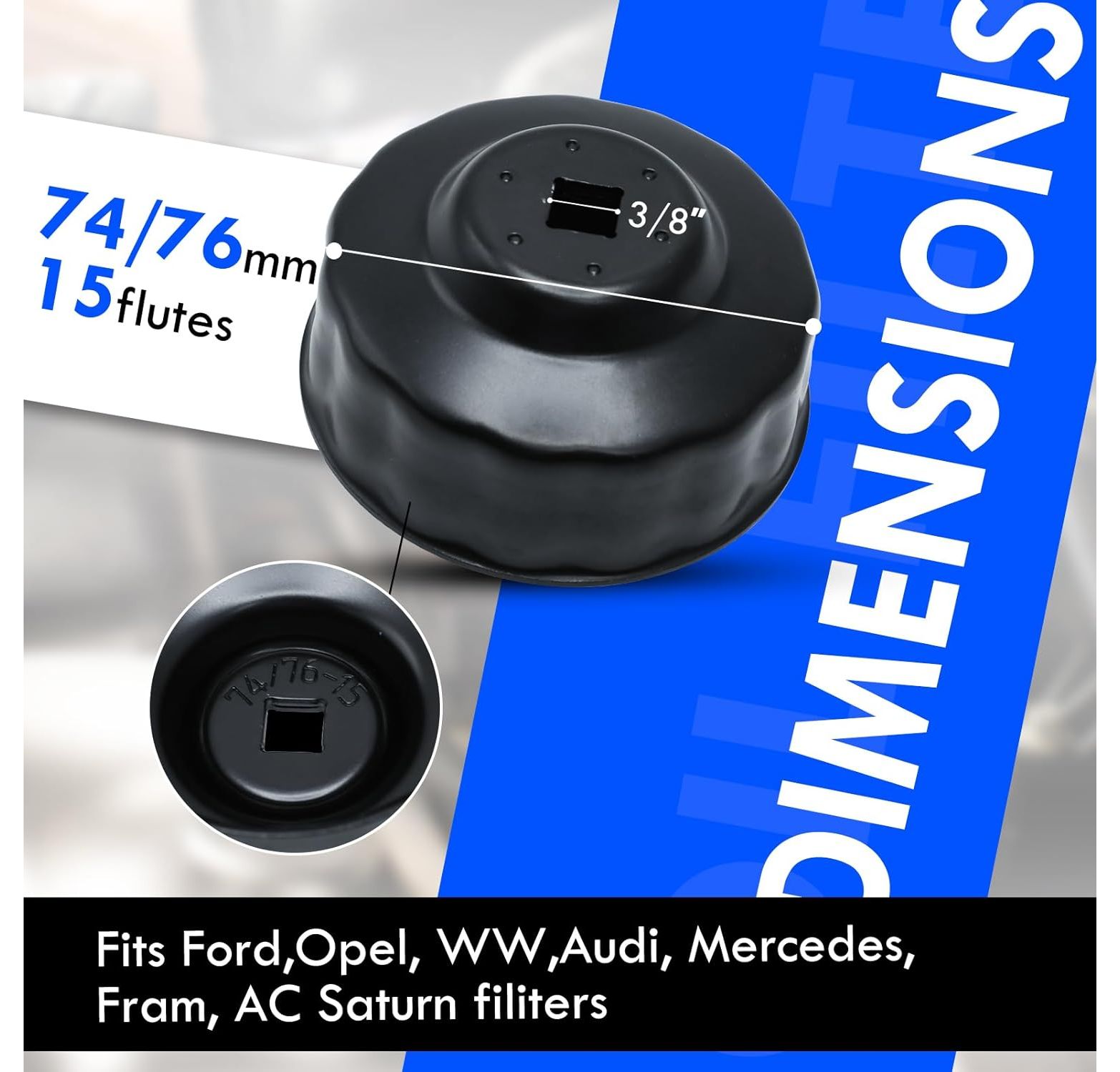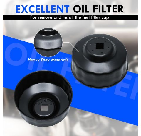 CCLIFE 74-76 mm Oil Filter Wrench 3/8 Inch Oil Filter Caps Oil Filter Tool Car 15-Point