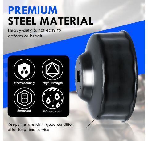 - 15-sided oil filter caps, painted black, made of chrome vanadium steel, 74-76 mm