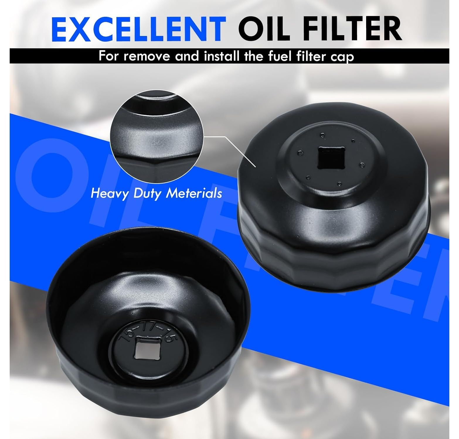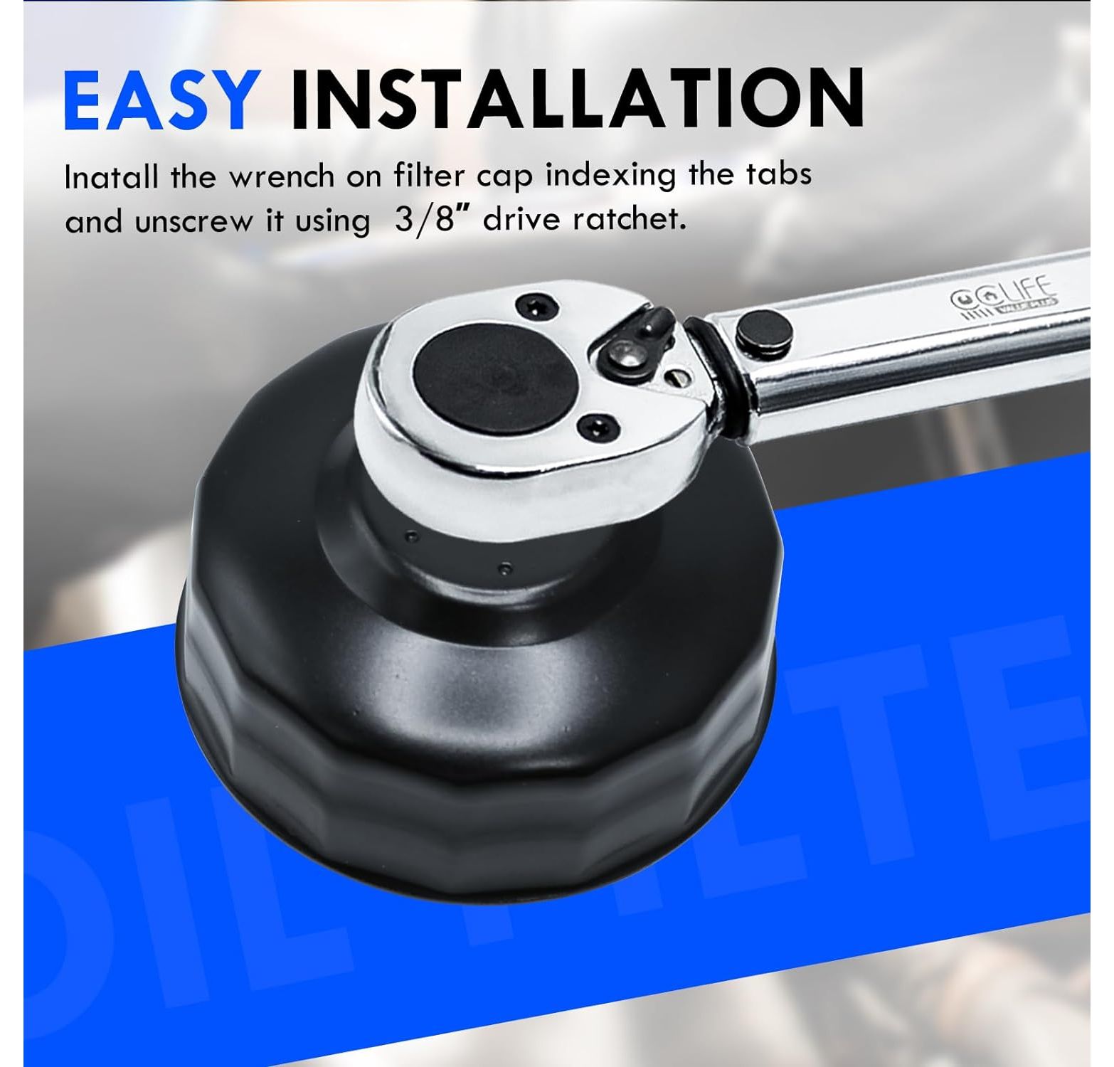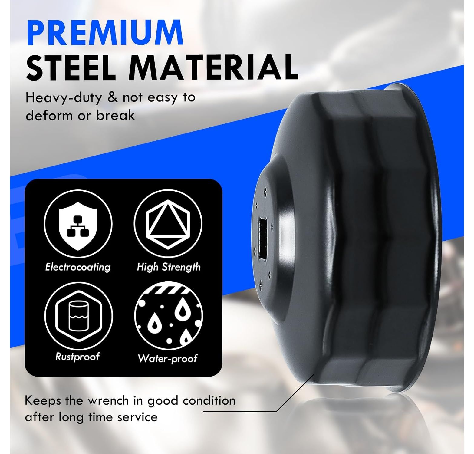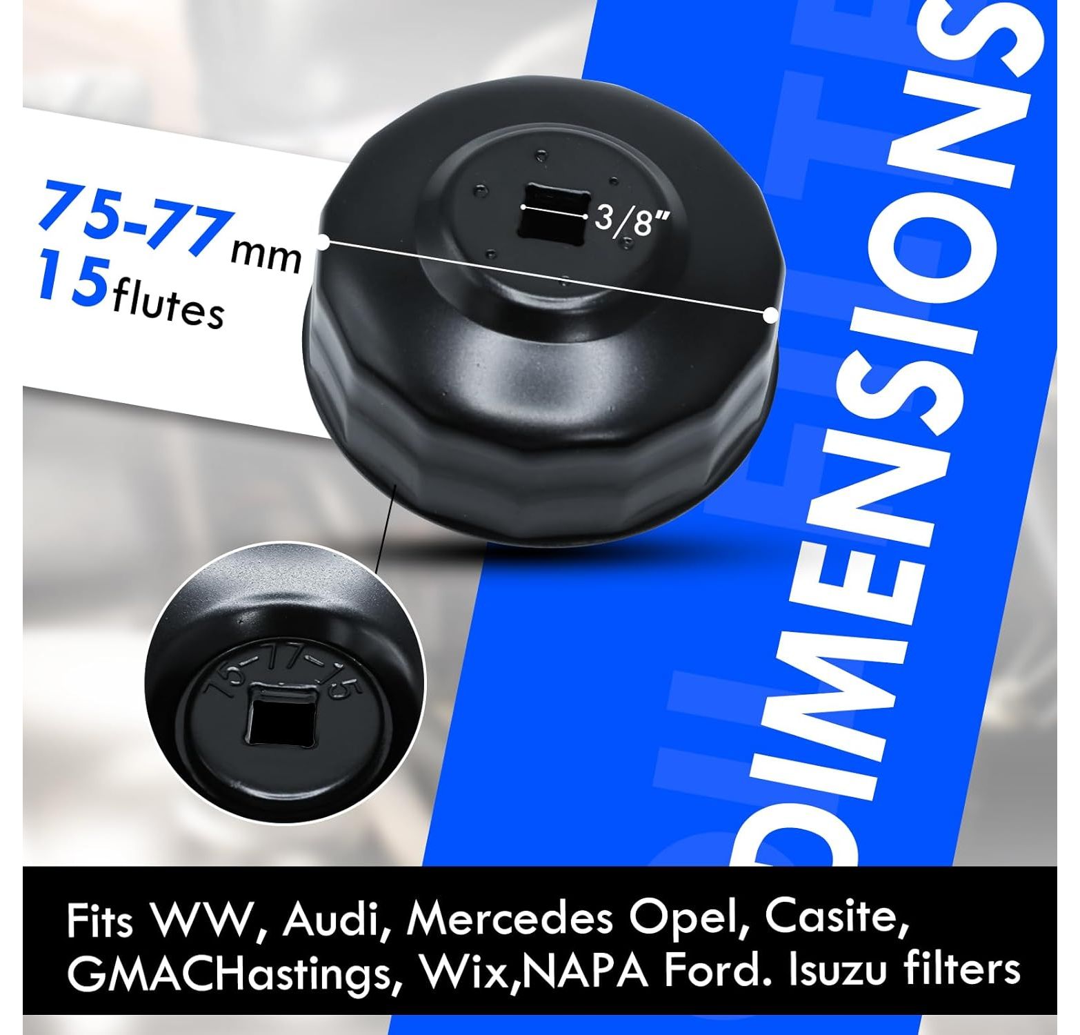 CCLIFE 75-77 mm Oil Filter Wrench 3/8 Inch Oil Filter Caps Oil Filter Tool Car 15-Point