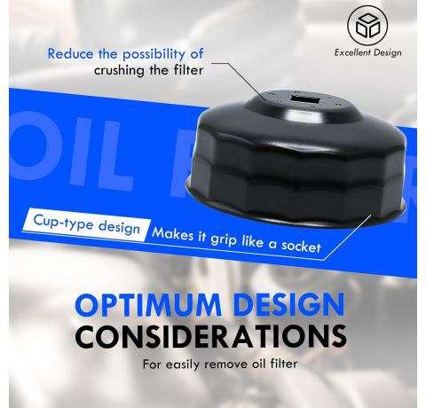 - 15-sided oil filter caps, painted black, made of chrome vanadium steel, 75-77 mm
