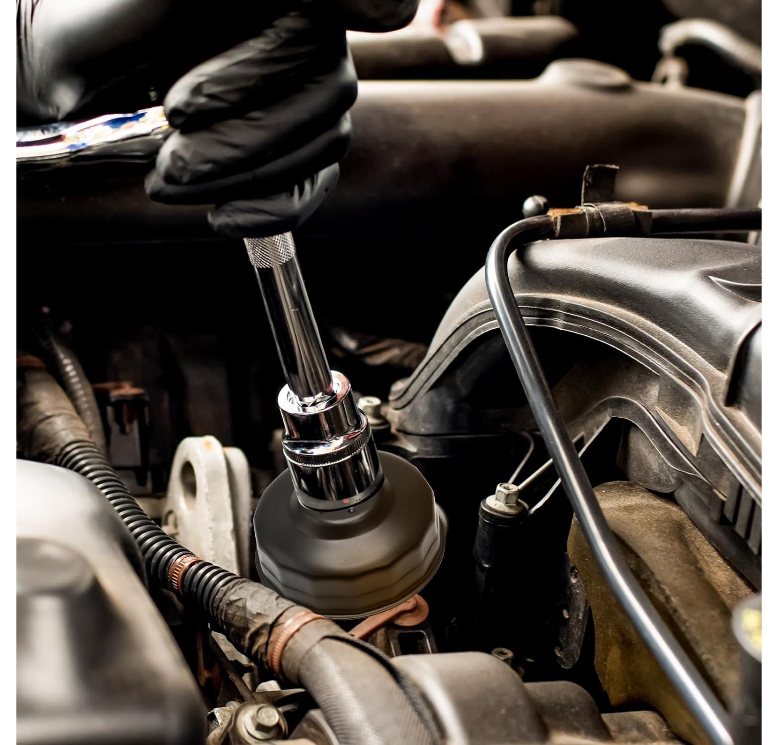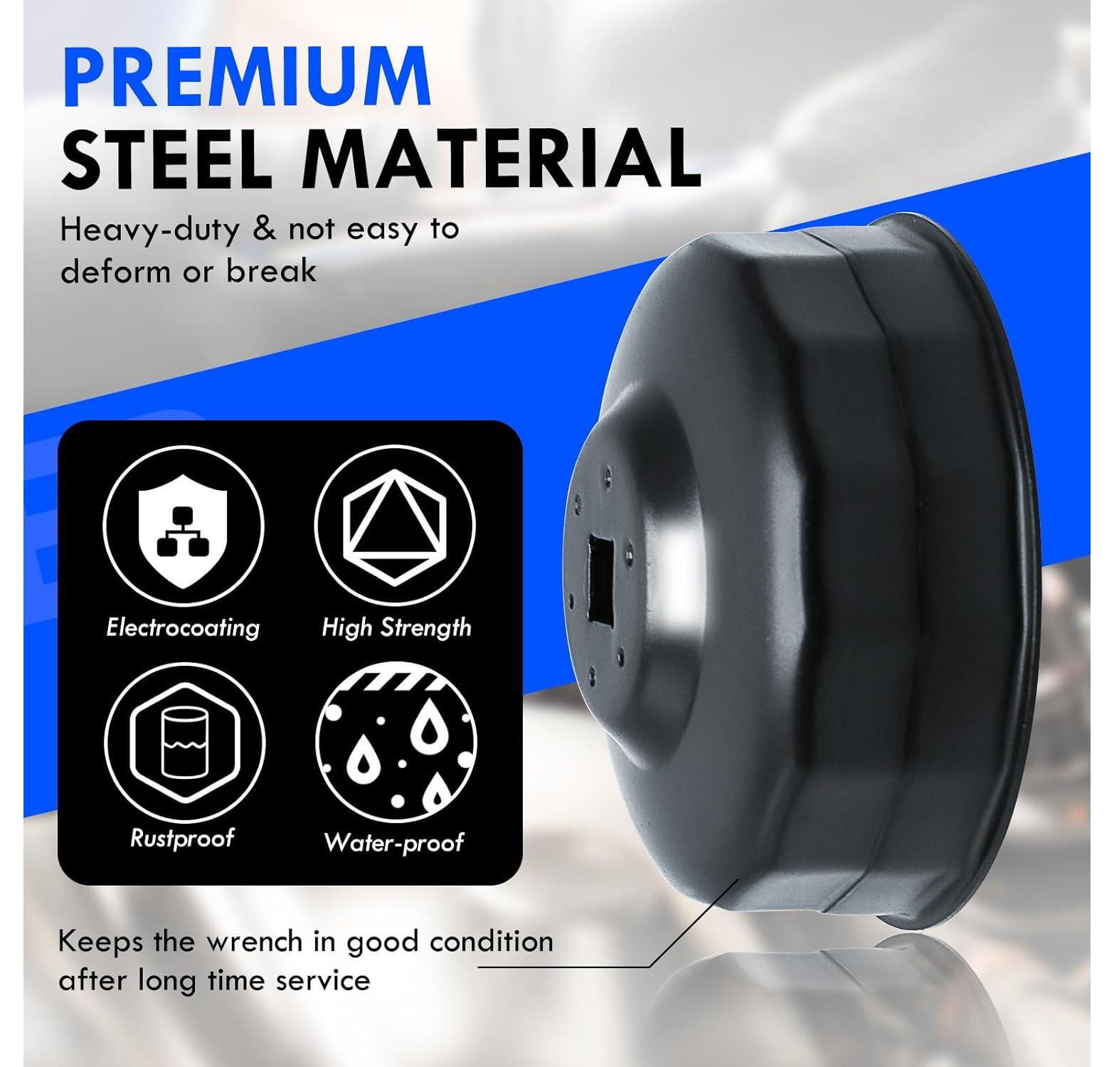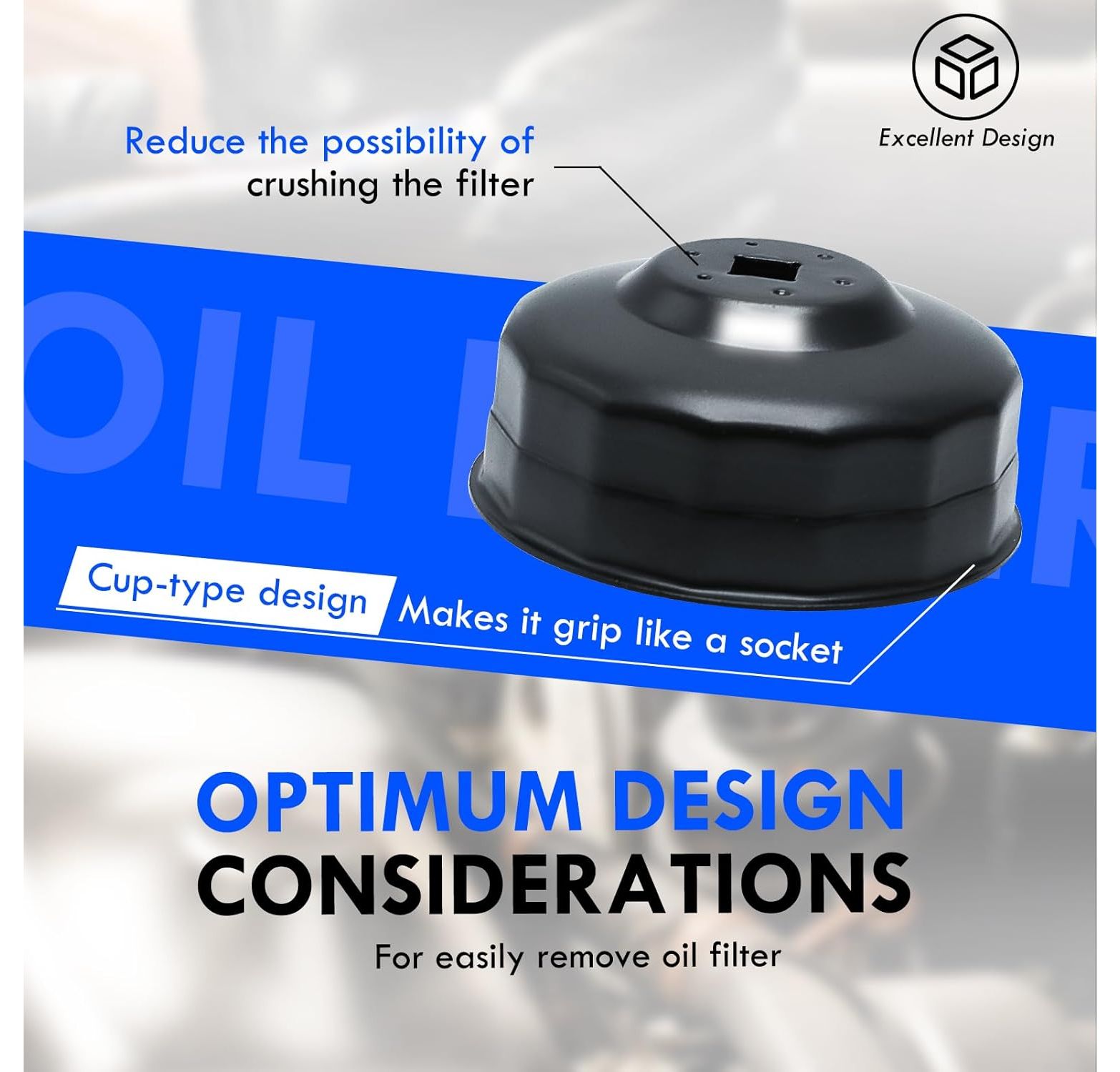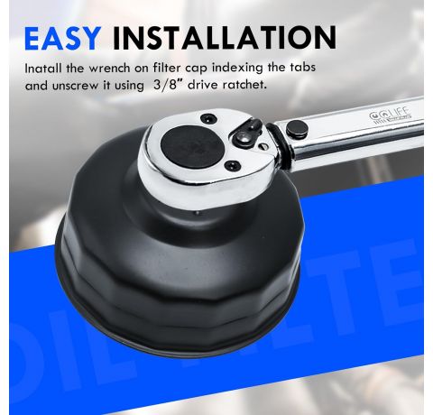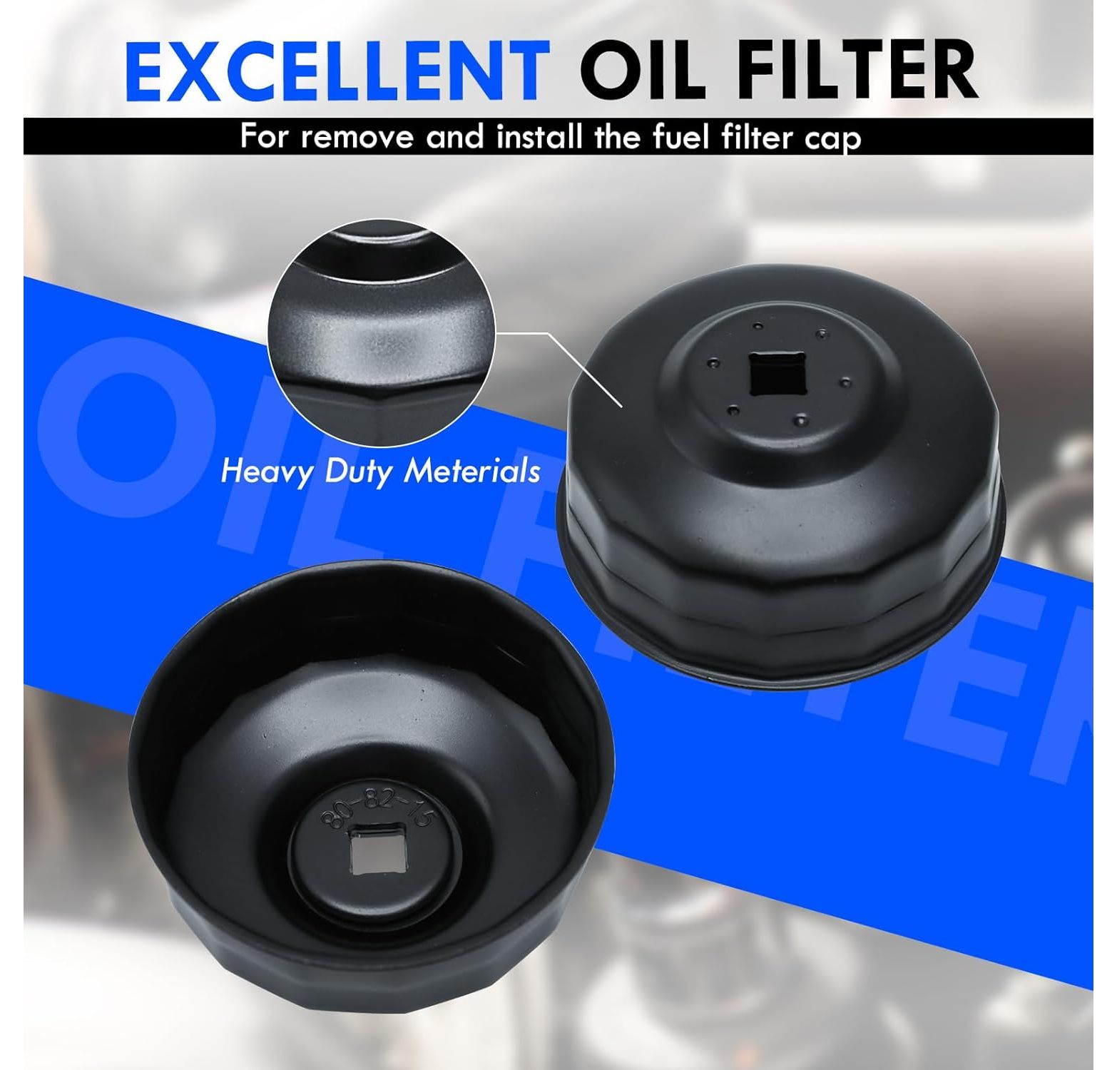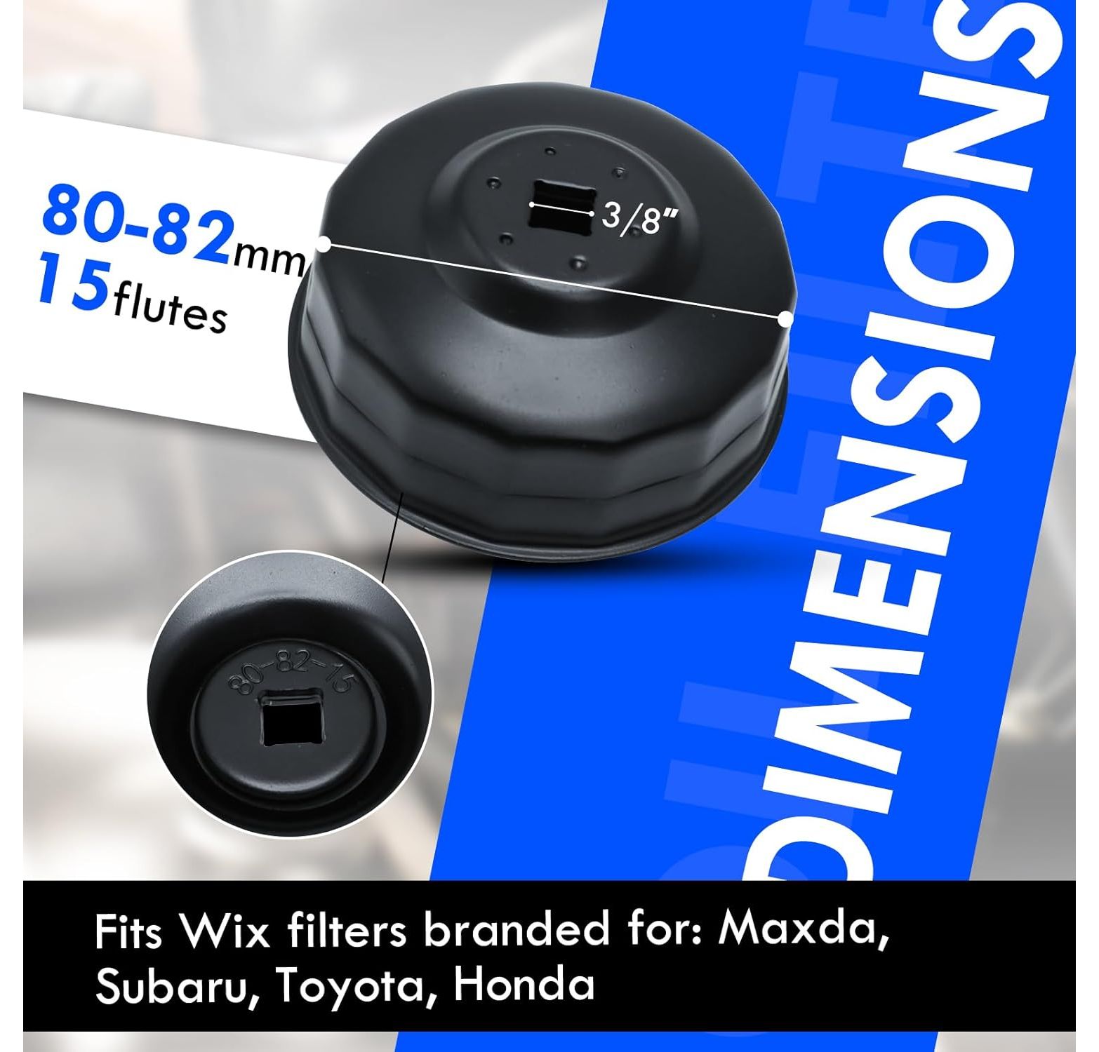 CCLIFE 80-82 mm Oil Filter Wrench 3/8 Inch Oil Filter Caps Oil Filter Tool Car 15-Point