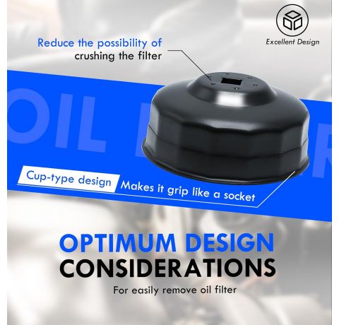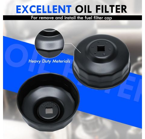 - 15-sided oil filter caps, painted black, made of chrome vanadium steel, 80-82 mm