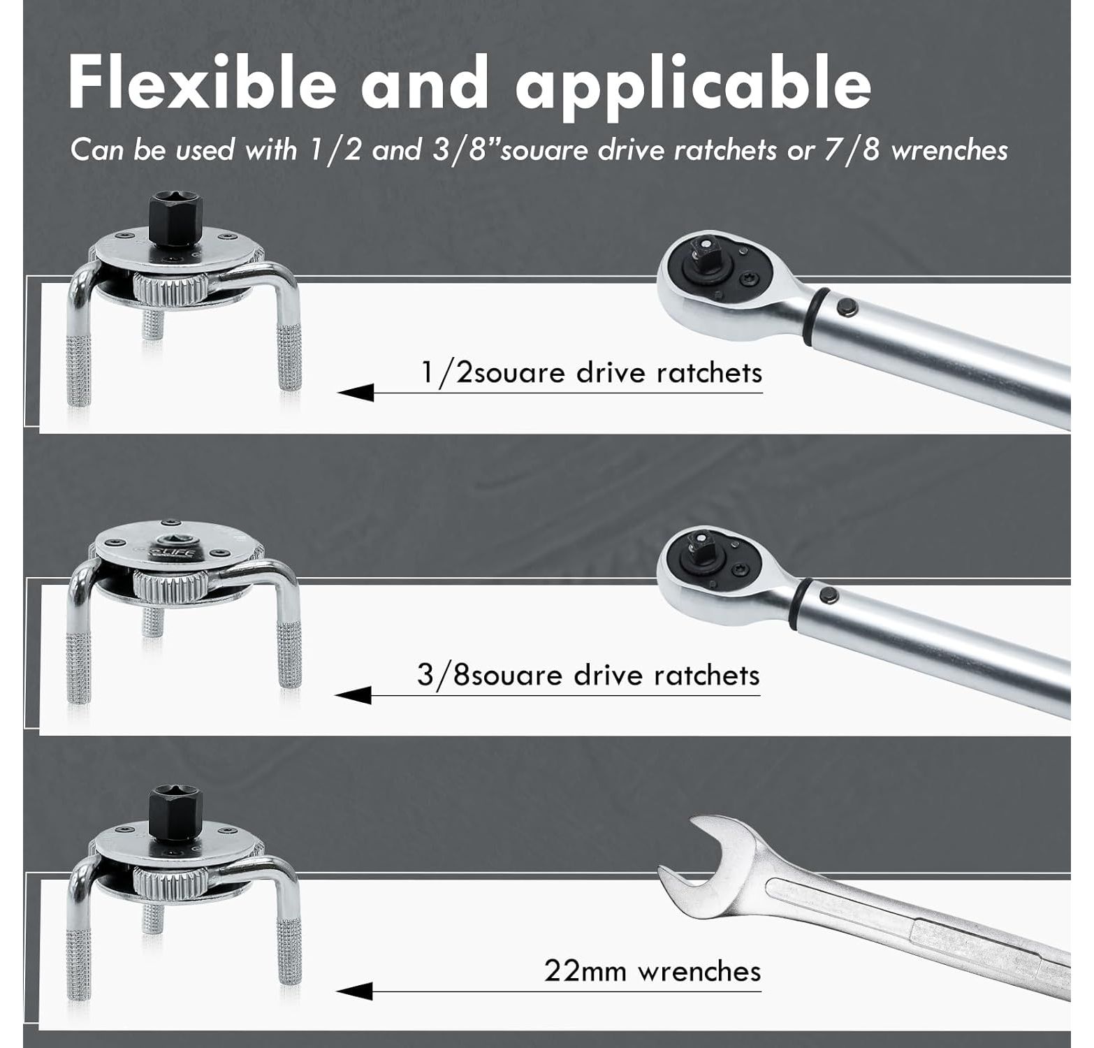 - 3-jaw design for easy removal of oil filters.