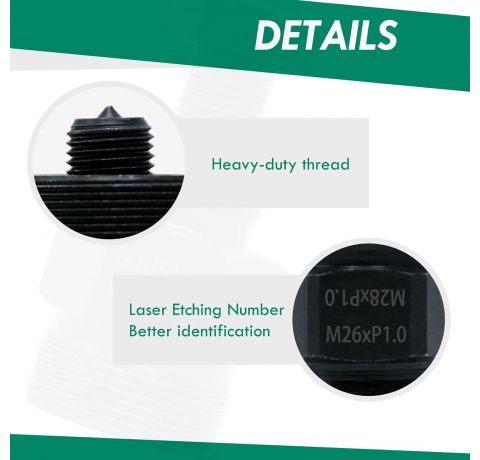 - Double End: M20 x 1.0 / M27 x 1.25 mm; M25 x 1.5 / M22 x 1.0 mm; M26 x 1.5 / M22 x 1.5 mm; M27 x 1.0 / M24 x 1.0 mm; M28 x 1.0 / M26 x 1.0 Single end mm: M19 x 1.0 mm; M28 x 1.5 mm