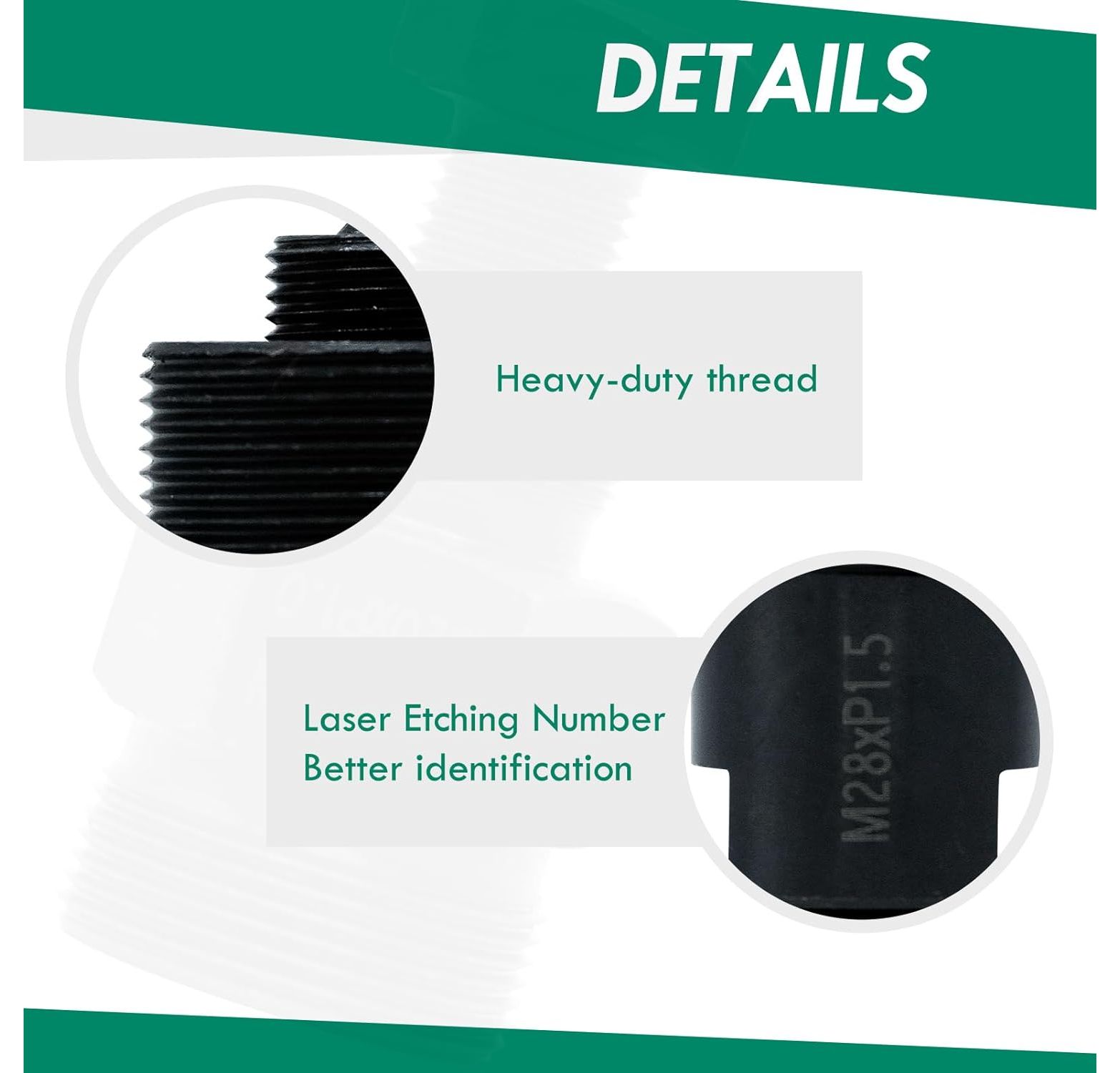- Double End: M20 x 1.0 / M27 x 1.25 mm; M25 x 1.5 / M22 x 1.0 mm; M26 x 1.5 / M22 x 1.5 mm; M27 x 1.0 / M24 x 1.0 mm; M28 x 1.0 / M26 x 1.0 Single end mm: M19 x 1.0 mm; M28 x 1.5 mm