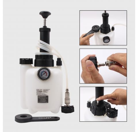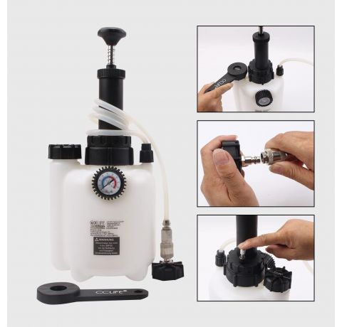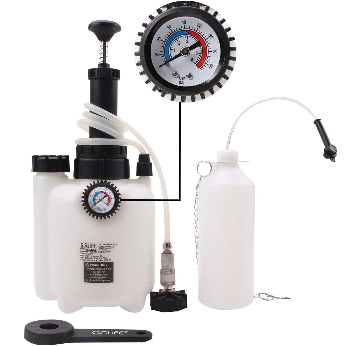 - Made from robust plastic, this brake bleeder is ideal for domestic use. Can hold 3 litres of liquid and can be used with European car models. The sturdy plastic material makes it not only easy-care, but also durable and facilitates brake bleeding in all kinds of vehicle types.