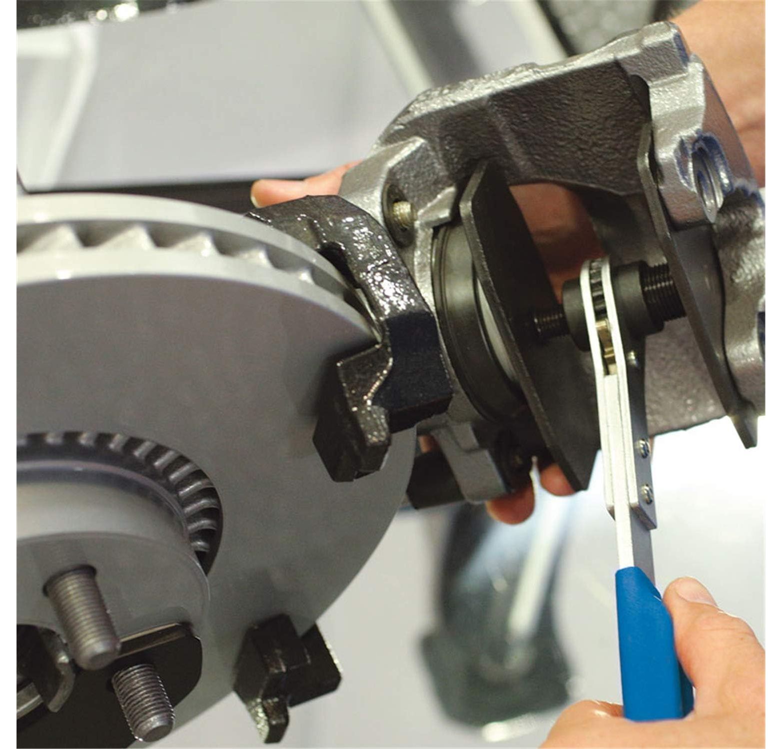 The brake caliper press is compatible with almost all common vehicle types, allowing you to work on various combination, double and quad piston callipers. This brake caliper is ideal for floating and fixed callipers, can be adjusted the shape of the calliper and number of pistons.