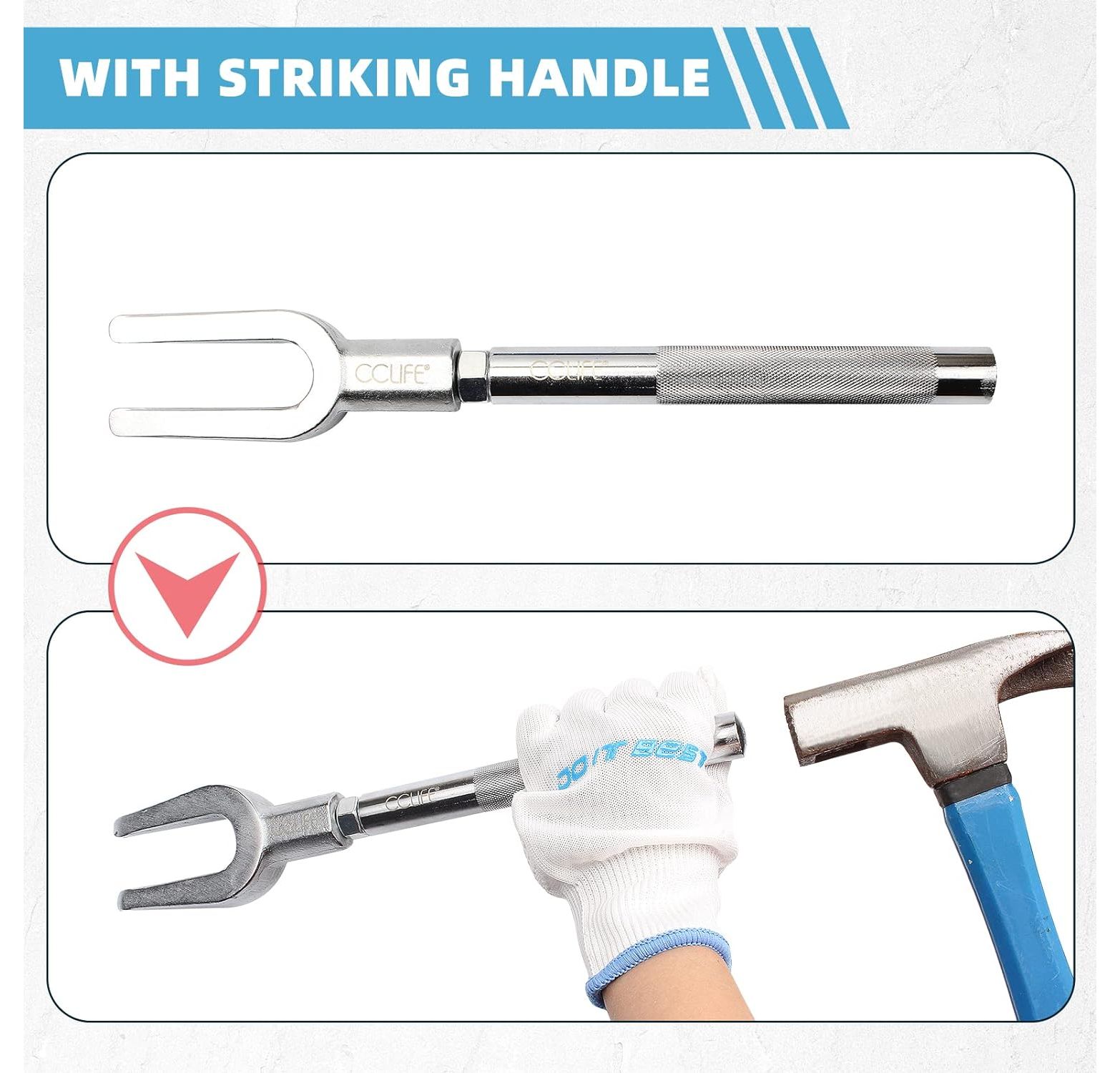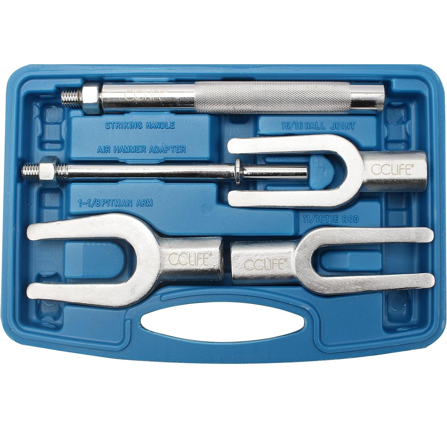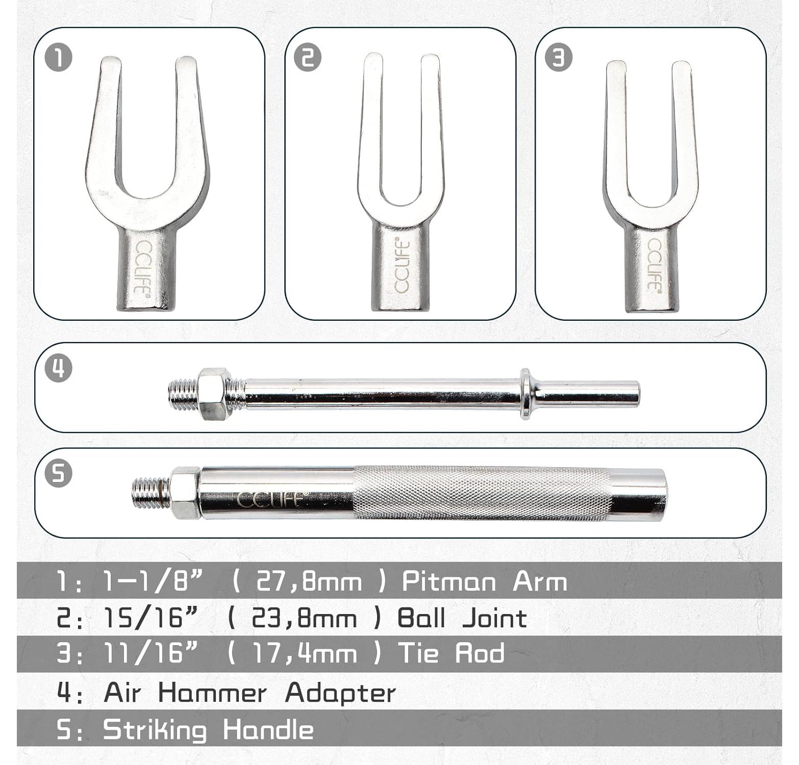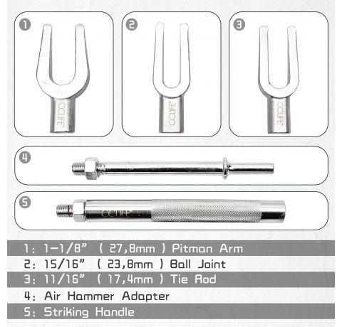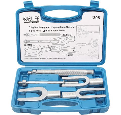 - Professional Puller: The 5-piece ball joint puller set has 3 different sizes of forks and is ideal for removing ball joints, wishbone ends and pull rods.