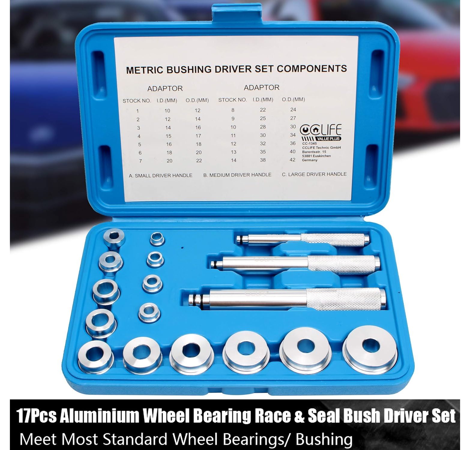 CCLIFE 17-Piece Wheel Bearing Thrust Piece Drive Set Tool Driver for Bearing Bushings Seal Ring Bearing Press Tool