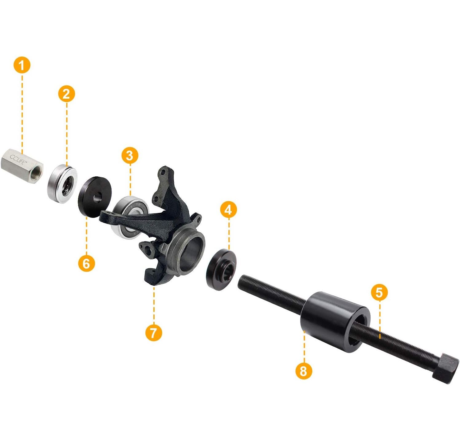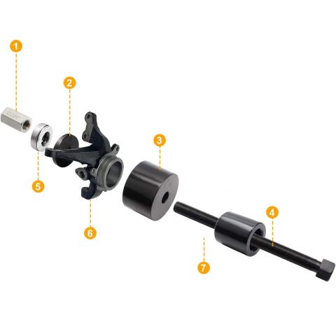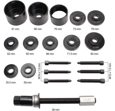 Make sure whether the vehicle has a fixed or a floating rotor. Before you push out the closed bearing with the wheel bearing tool kit, you need to remove the wheel hub. Use the included threaded bolts (3 x M12, 3 x M14) to remove the wheel hub