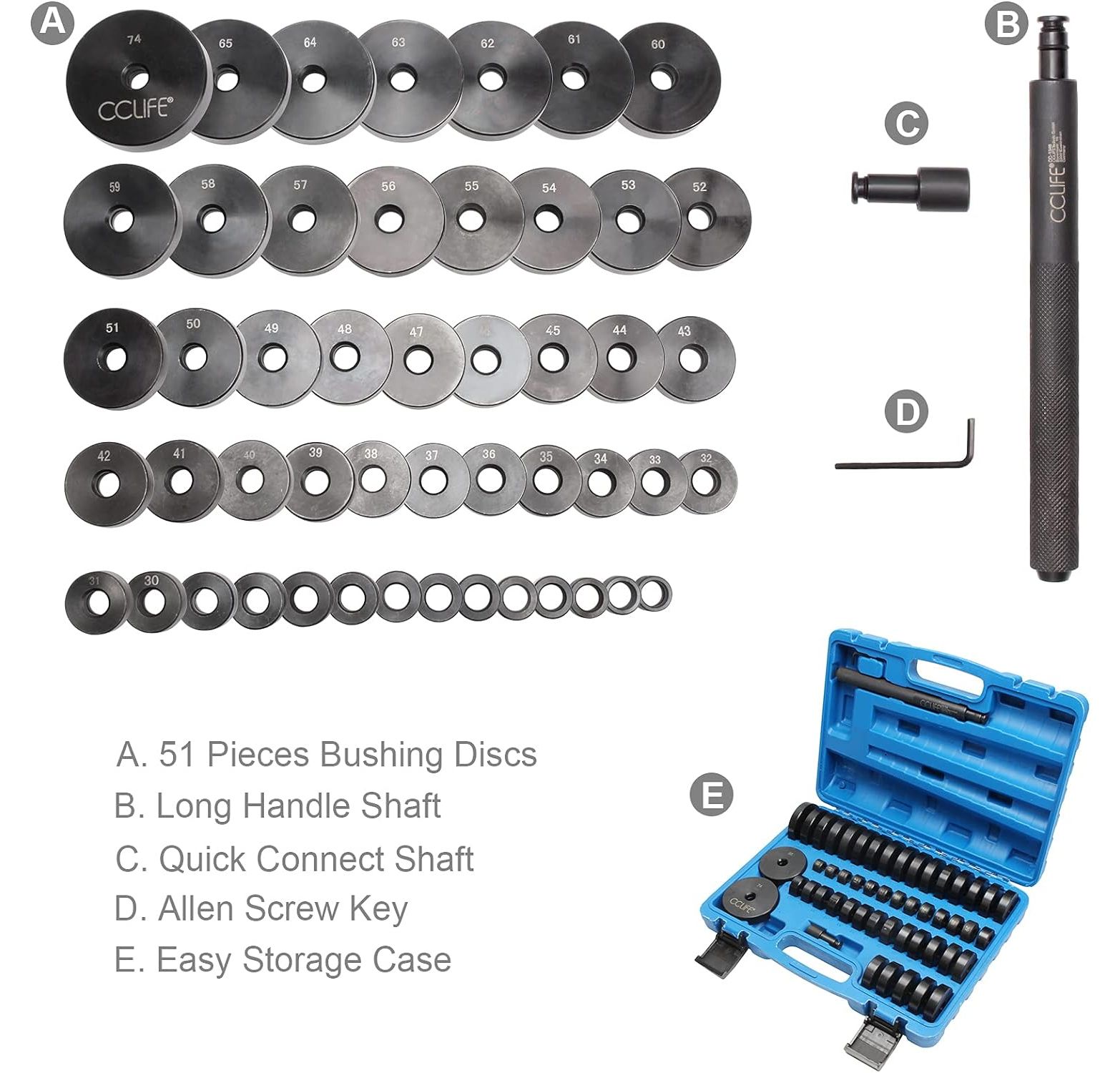 CCLIFE 52-Piece Wheel Bearing Pressure Piece Mounting Washers Set Bushings Drive Set Bearing Press Tool