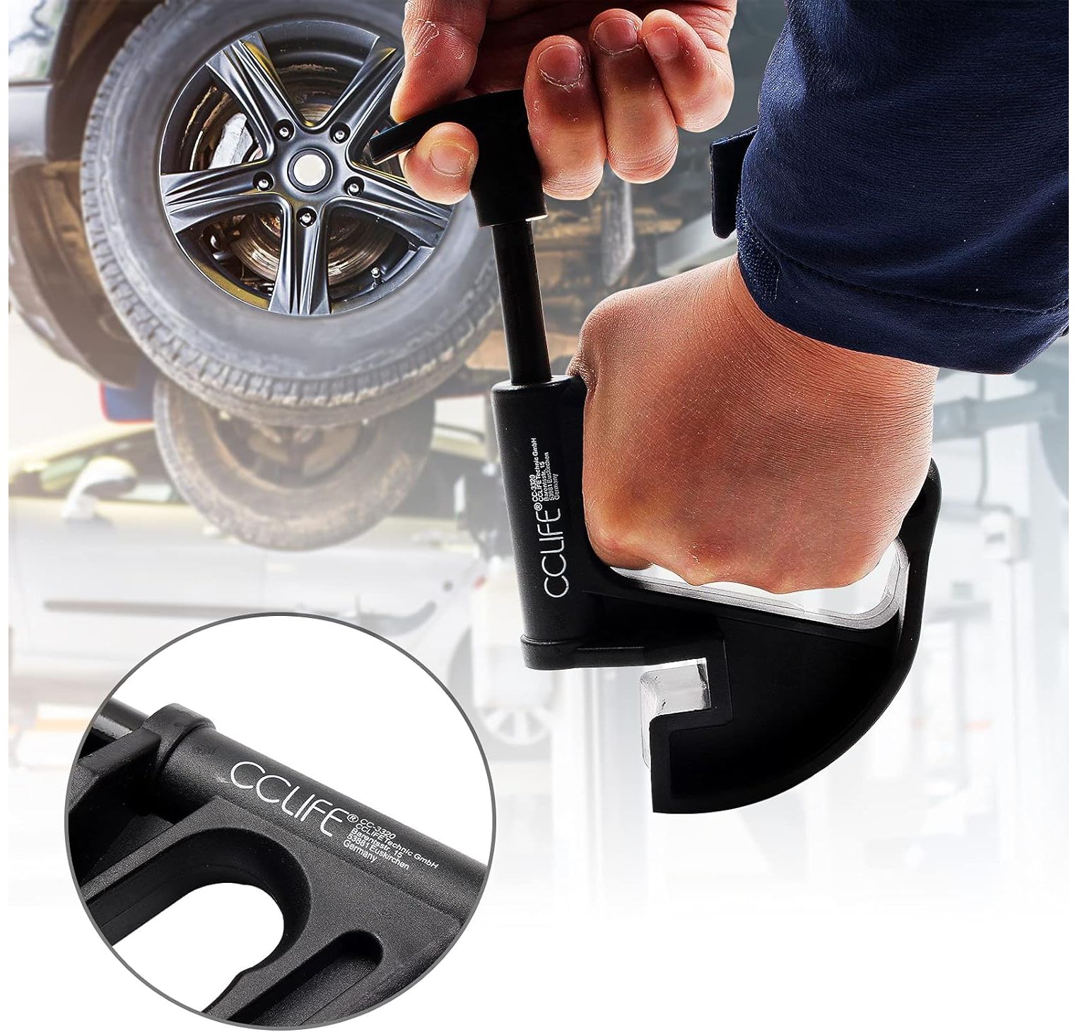 CCLIFE 2-piece tyre bead clamp, bead assembly tool Our tyre changer is made of PA and 30% fibers, which are sturdy and durable. Will not scratch or damage the wheels. Easy to use, suitable for most rims. Suitable for normal low profile tyres and tyres. This bead compressor pushes the bead into the centre of the wheel, making it easier to assemble and disassemble tyres. Size: 130mm x 72mm x 160mm