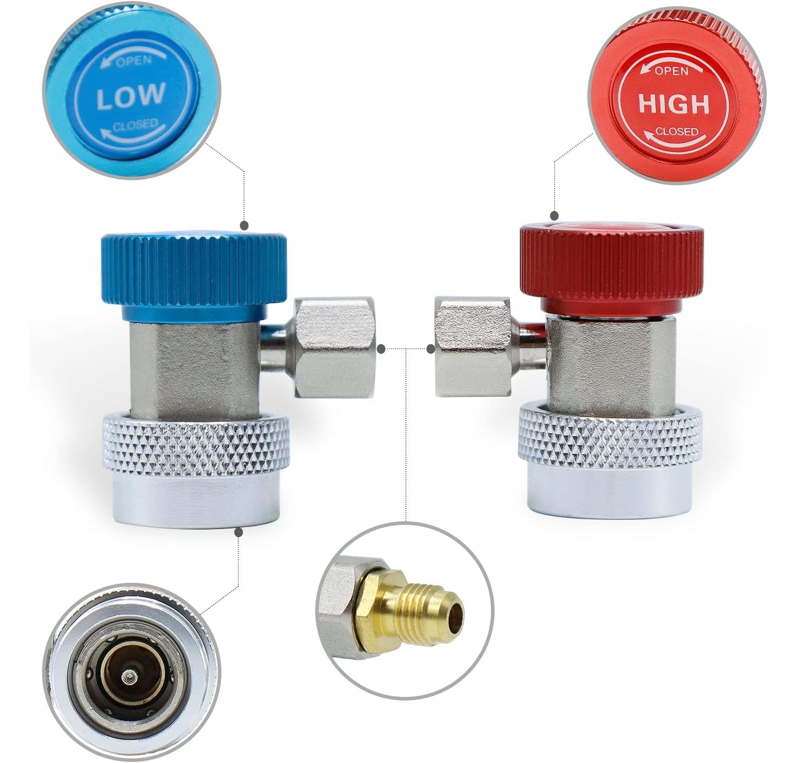 CCLIFE 2-Piece R12 R134A AC Car Air Conditioning Adapter Coupler Quick Connector High Low Pressure