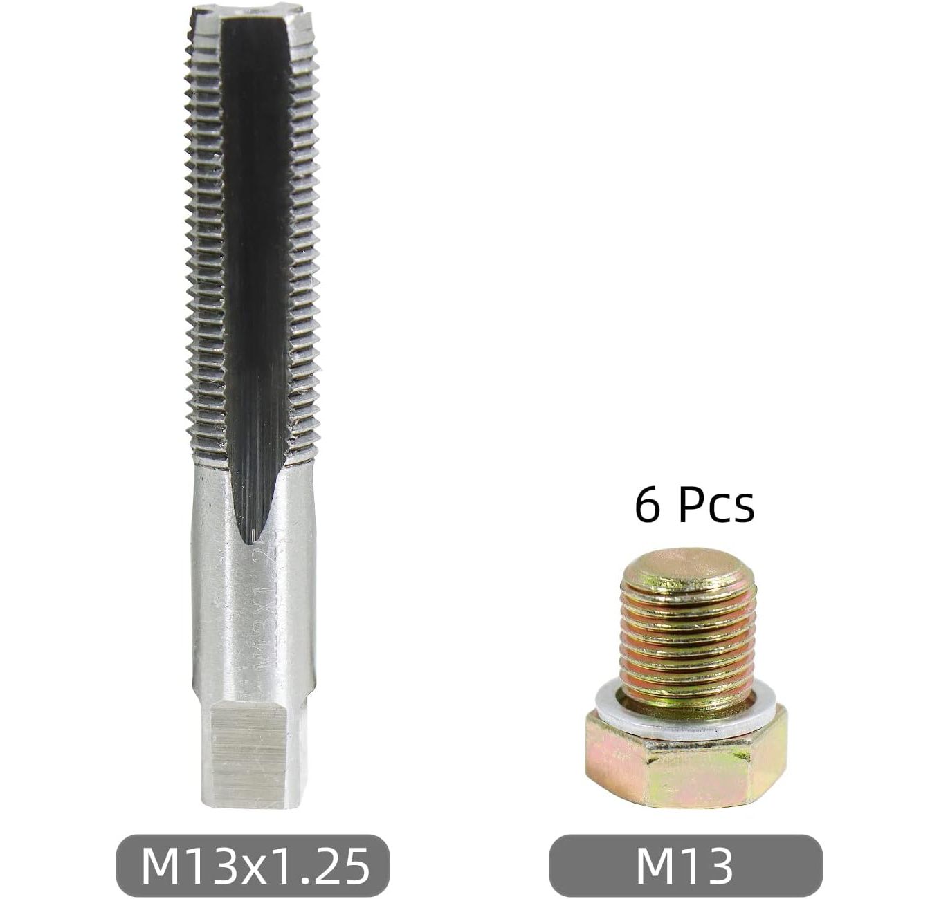 - The set includes the following tools: Tap Drill: 1 x M13 x 1.25; 6 x New Oil Drain Screws M13; 6 x Sealing Rings M13