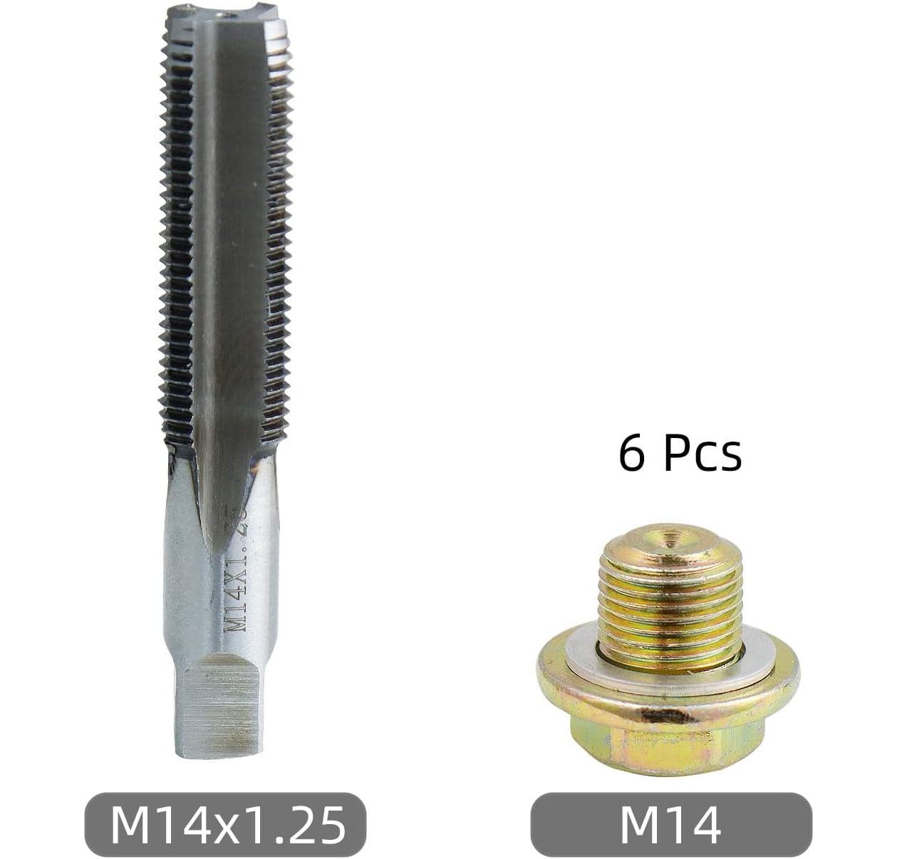 - The set includes the following tools: Tap Drill: 1 x M14 x 1.25; 6 x New Oil Drain Screws M14; 6 x Sealing Rings M14