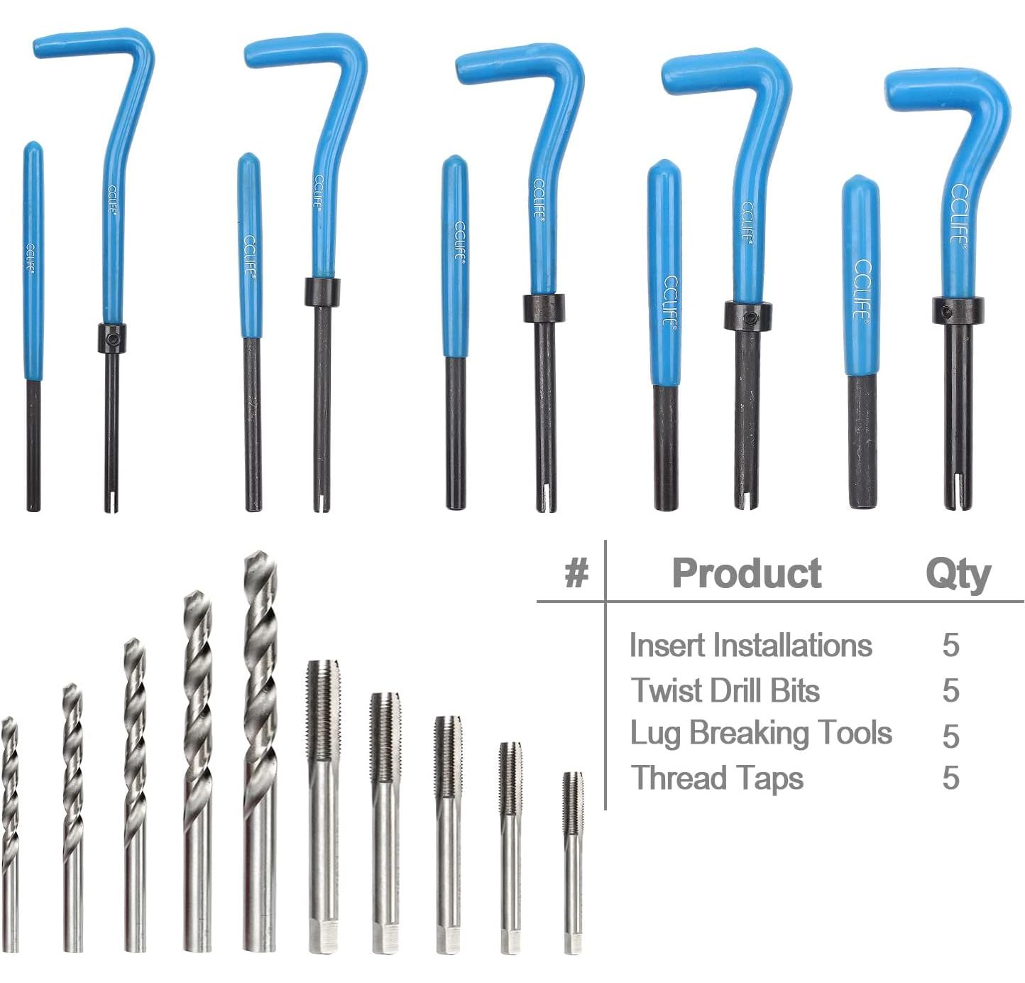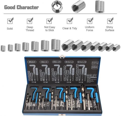 Cclife 131-piece Thread Repair Kit, with M5 M6 M8 M10 M12 Inserts / Sleeves