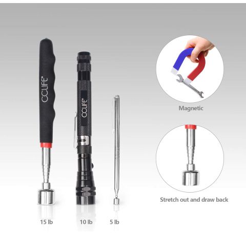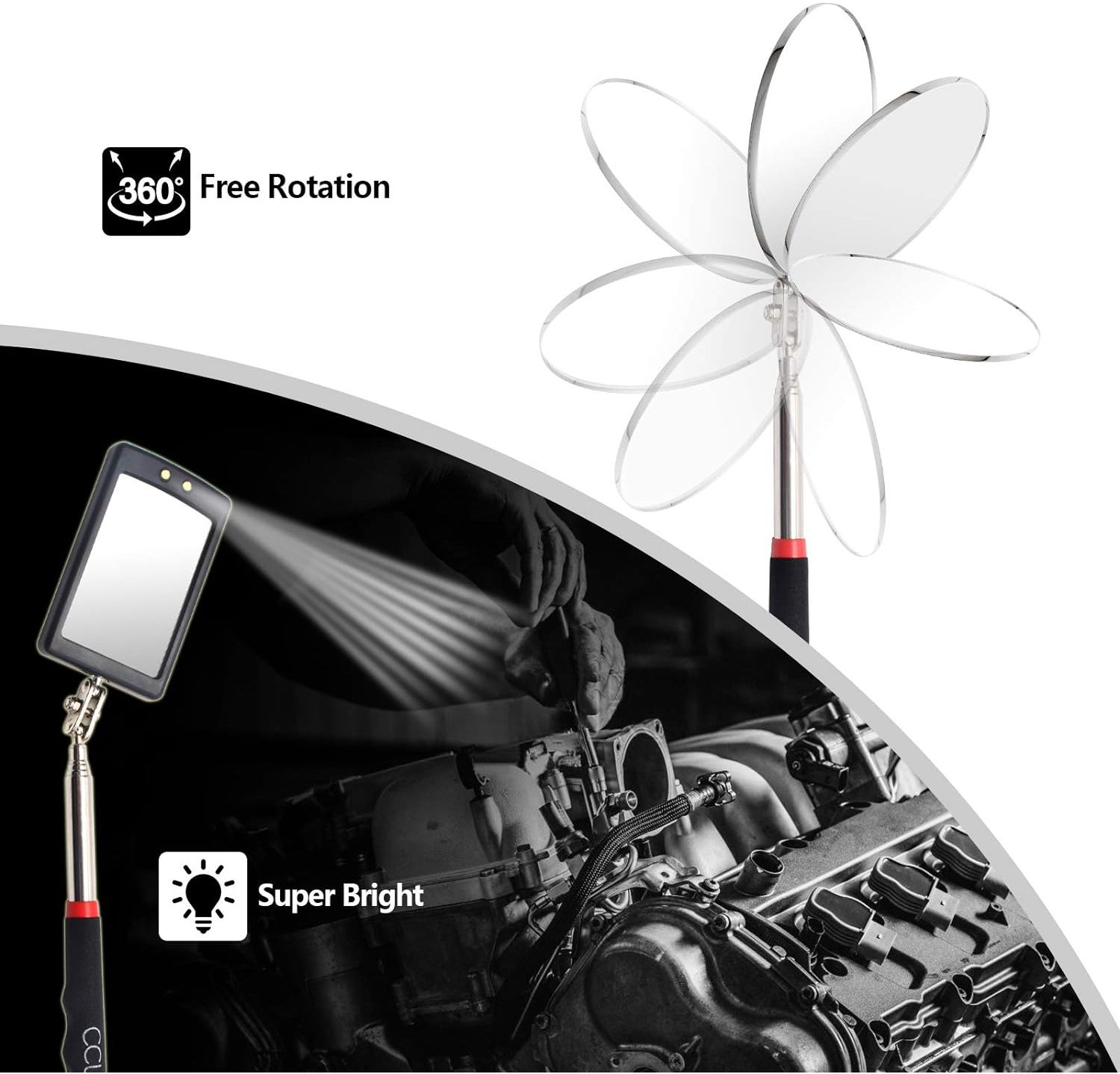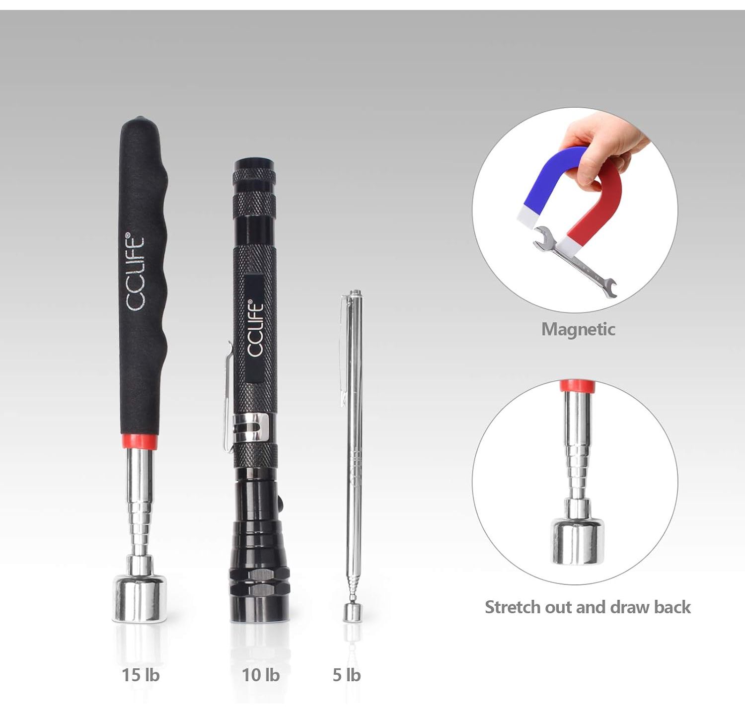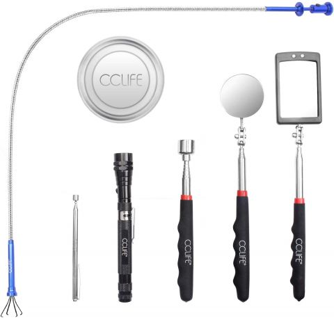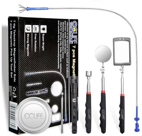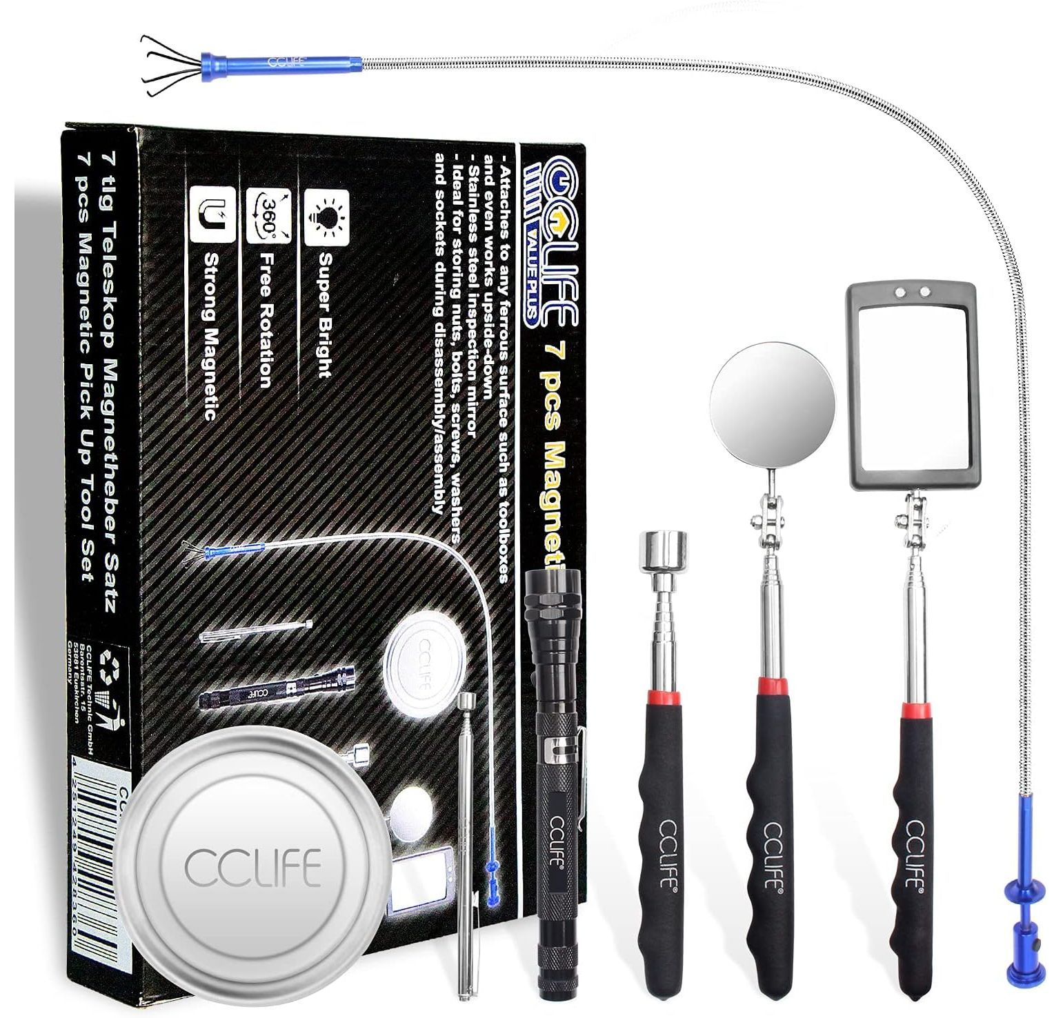 CCLIFE 7-Piece Pick Up Tool Magnetic Telescopic Tool Including Inspection Mirror Claw Gripper Magnetic Lifter with LED Lamp Magnetic Rod