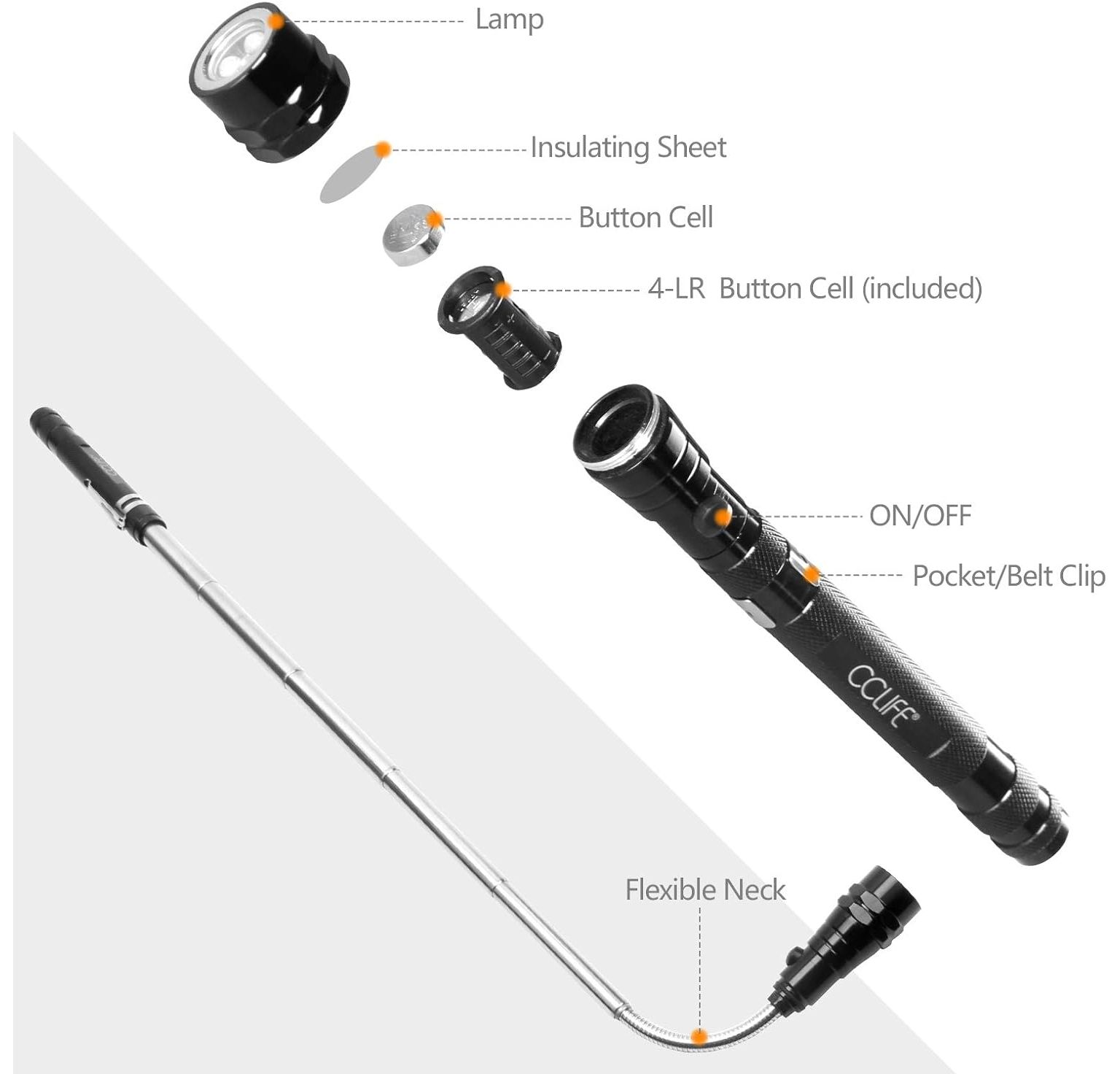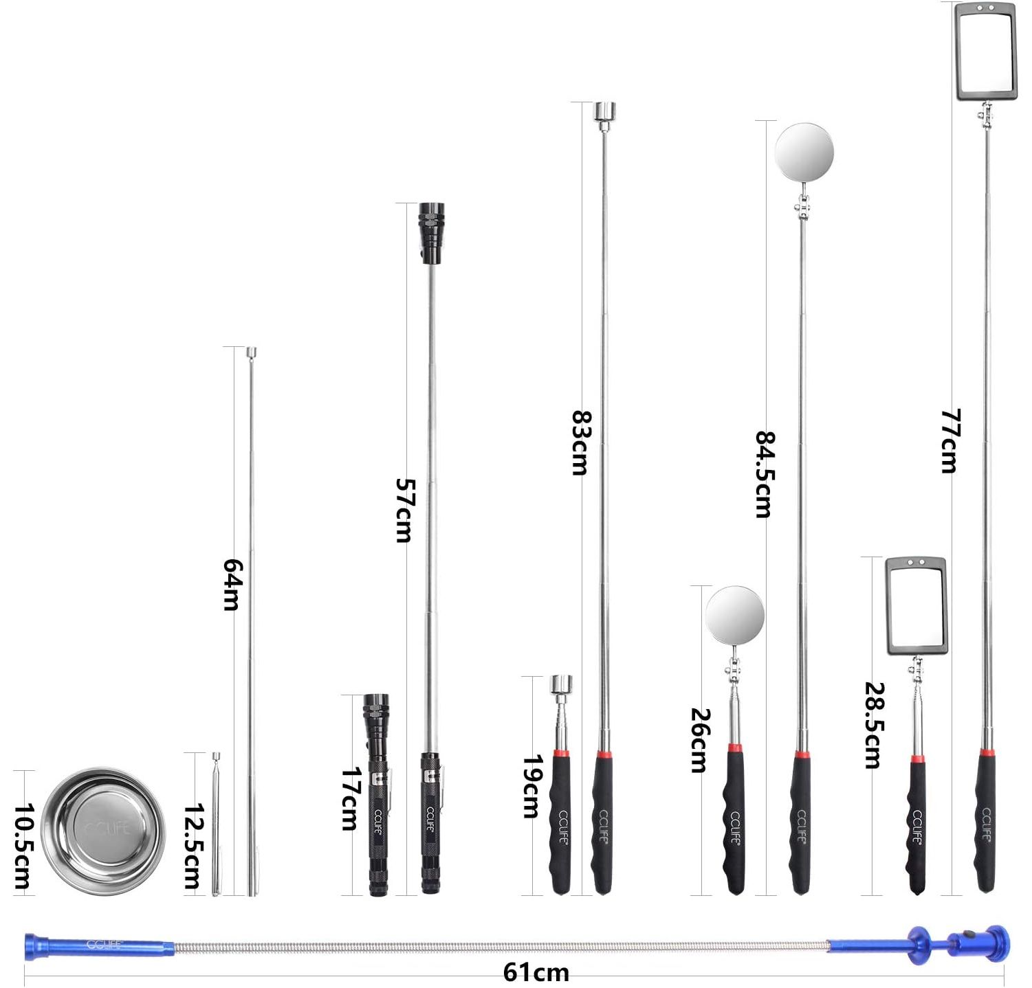 - Easy to reach hard-to-reach places: thanks to the extendable telescopic rod, you can reach remote areas under chest of drawers, cars and much more. Look around angled corners and retrieve lost items.