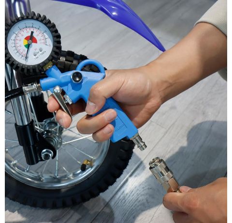- Easy to Use The 1/4" hose lock on the air chuck and quick coupling make it easy to attach the inflator to air compressor and tire.