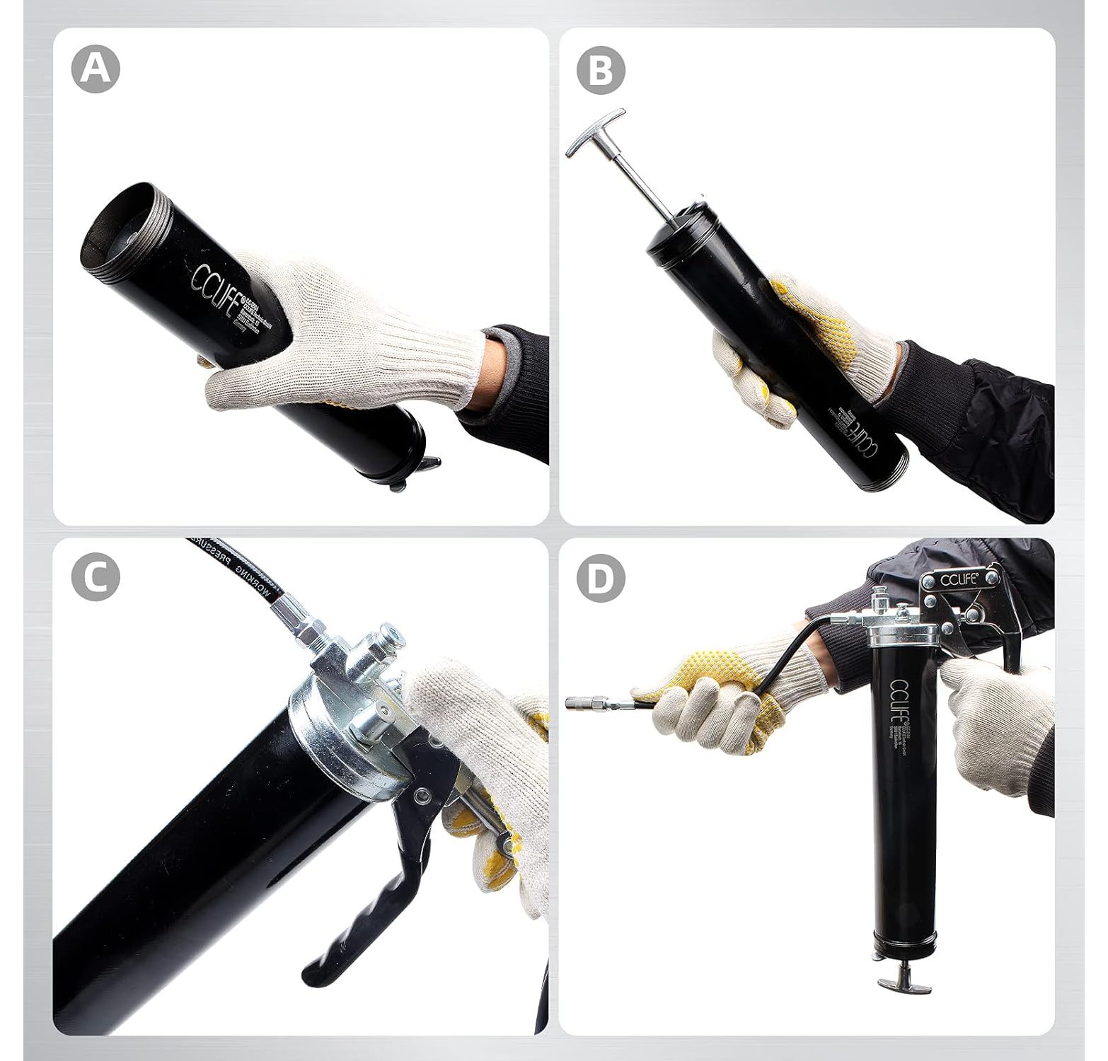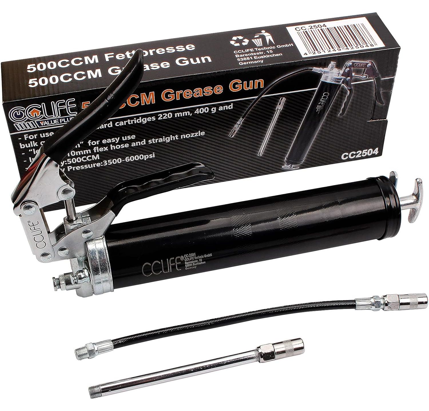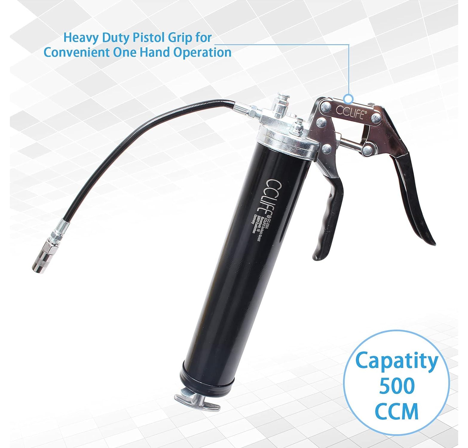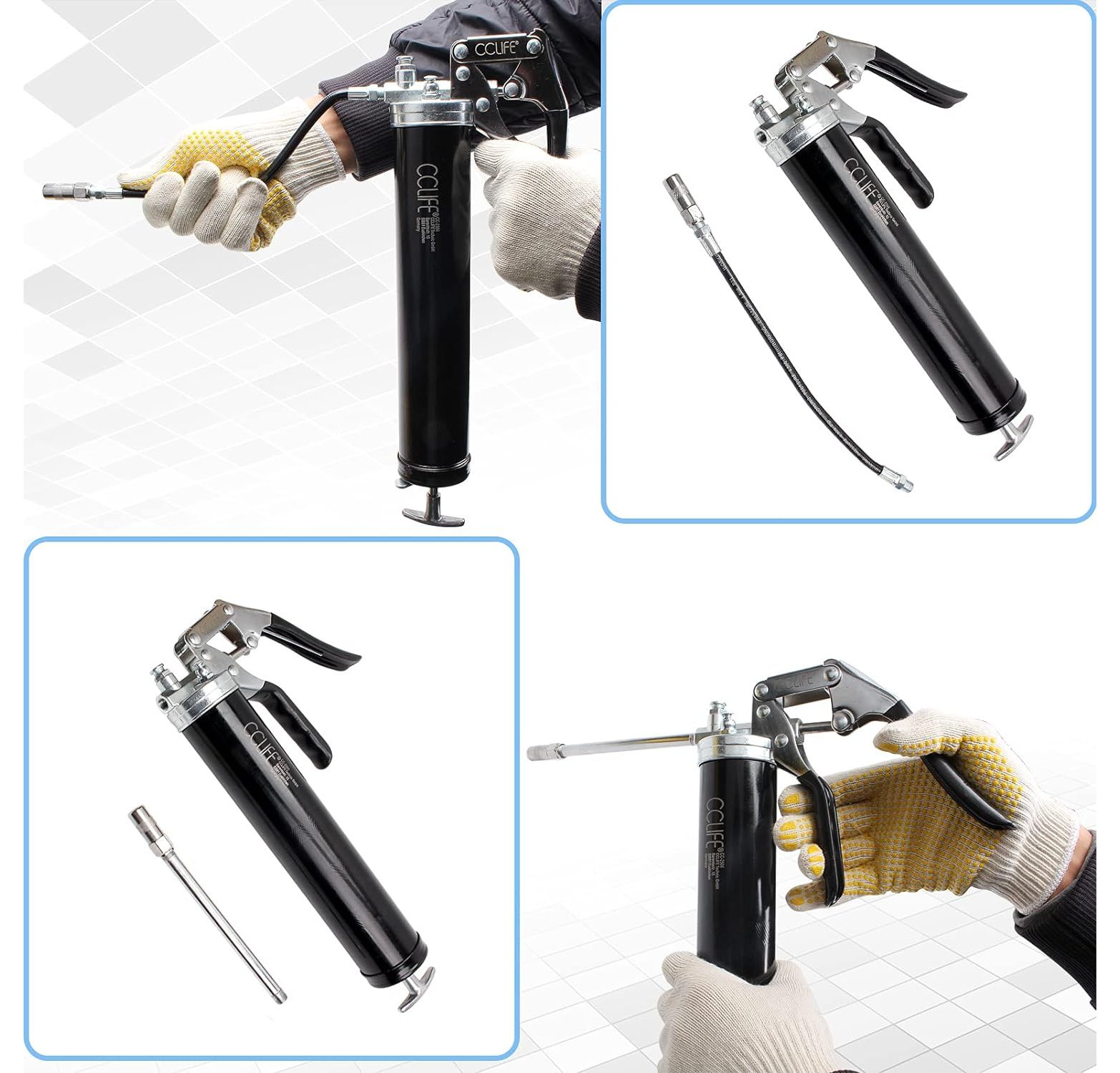 CCLIFE Grease Gun Single Hand 6000 PSI Lubrication Lever Grease Gun 12 Inch Flex Hose and Metal Extension for 400 g Cartridge
