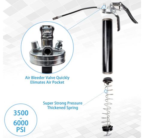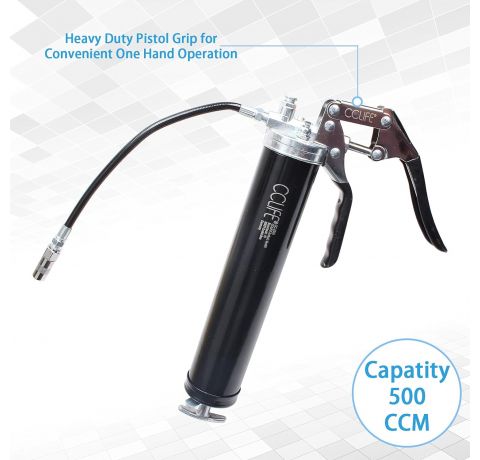 - Purpose and functional one hand grease gun from 3500 PSI to 6000 PSI is designed for 500cc content