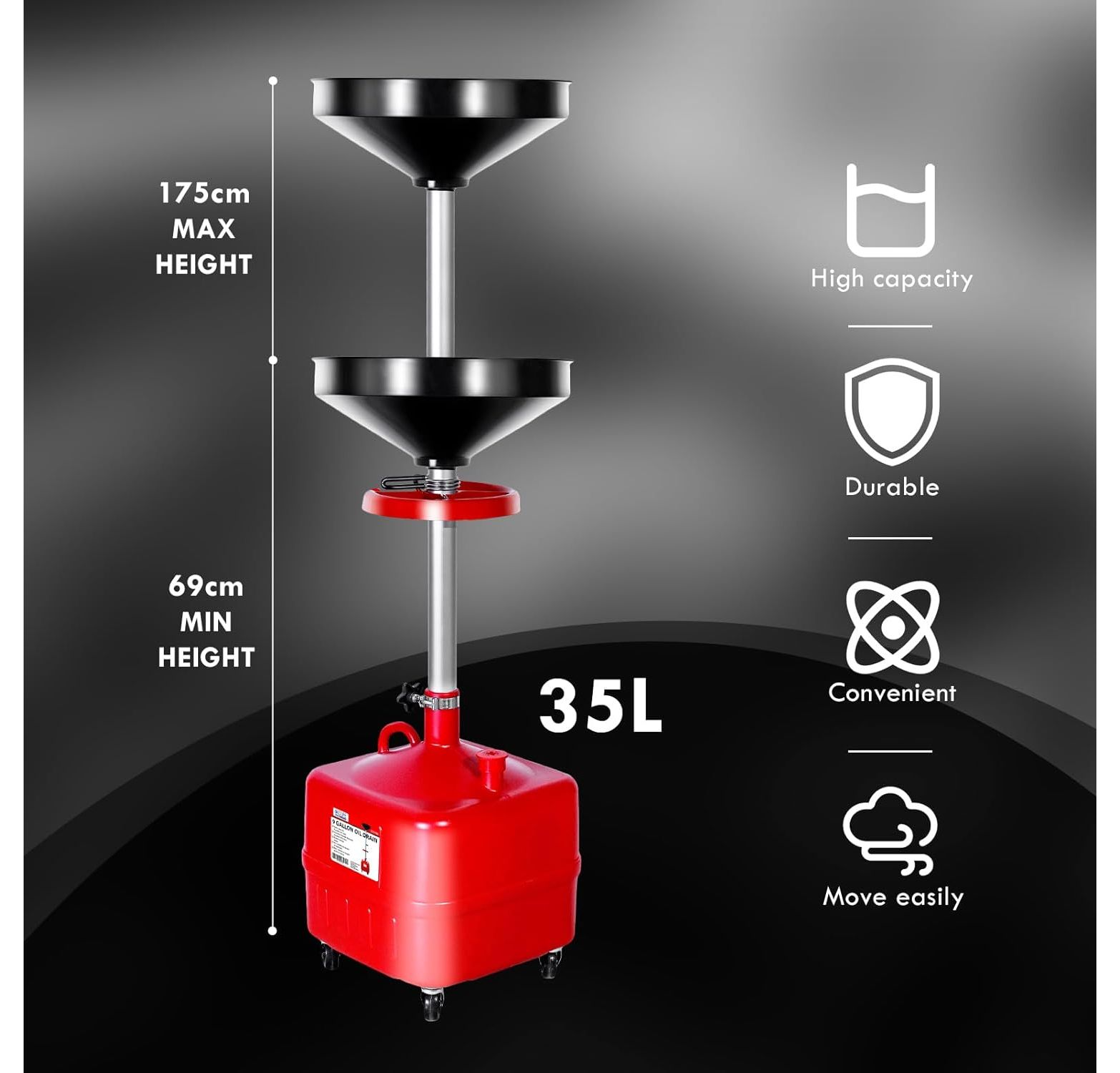 CCLIFE 35 L Oil Catch Cart Oil Catch Trolley Oil Catch Container Car 69-175 cm