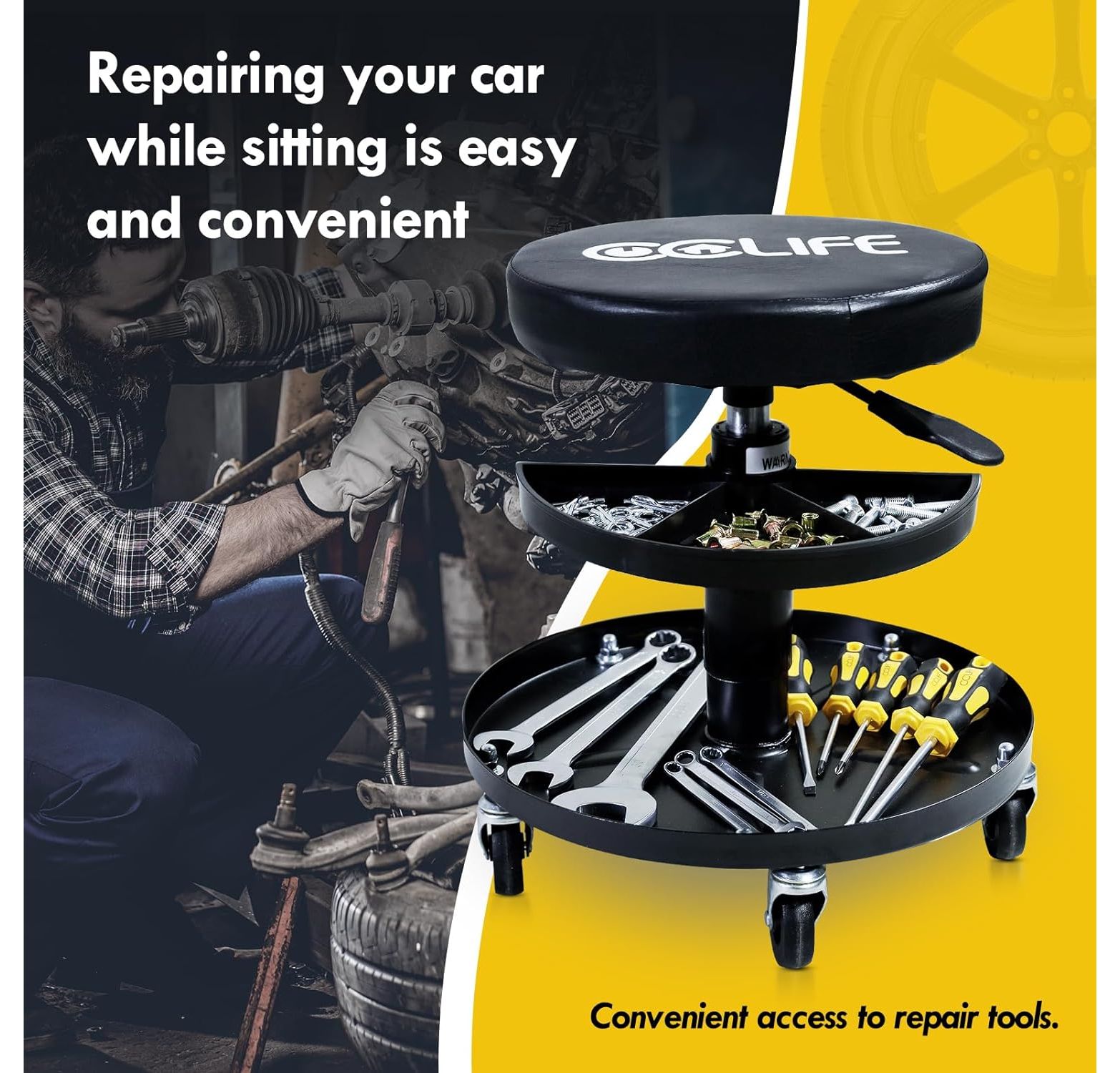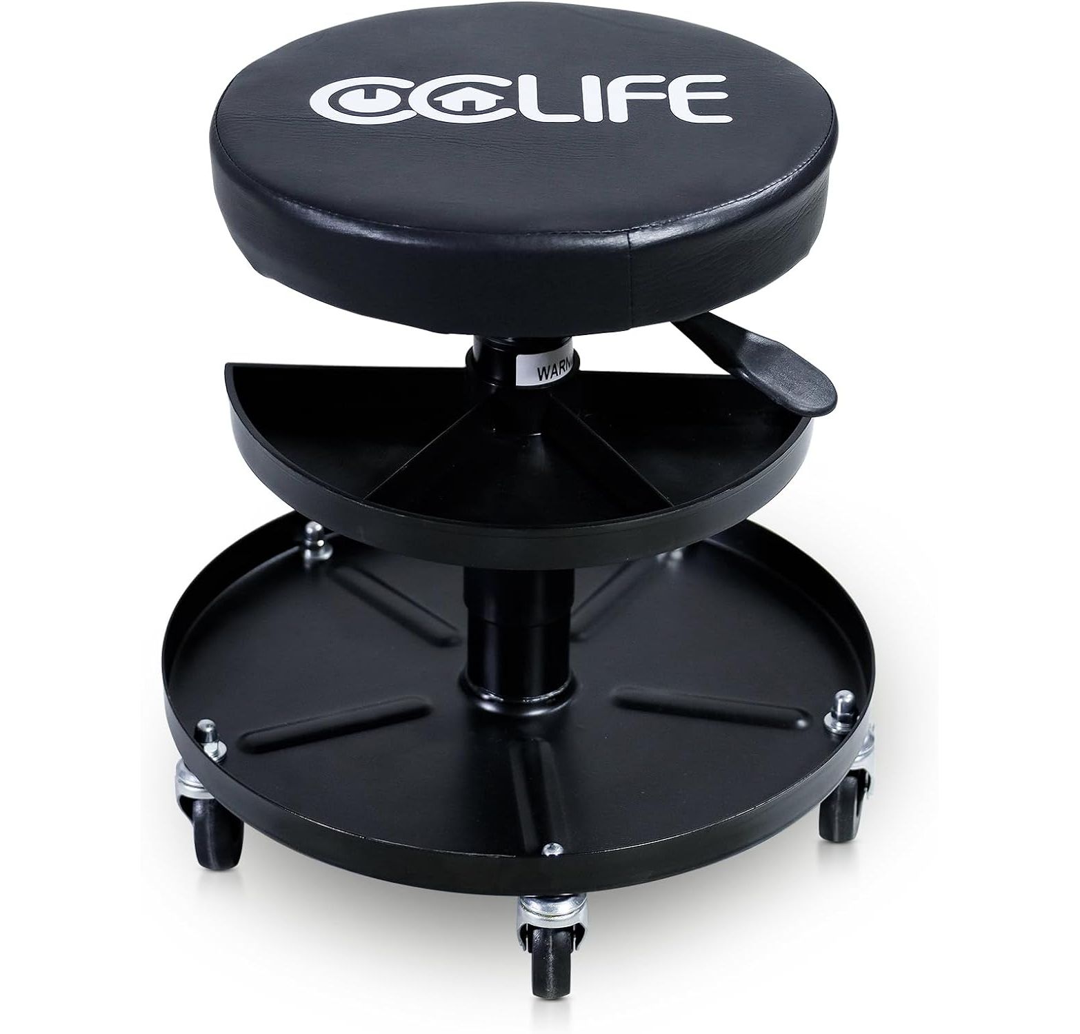 Discover the CCLIFE roller stool for workshops, an indispensable companion for your work area, combining outstanding versatility, comfort and exceptional durability. This height-adjustable work roller stool with a maximum load capacity of 120 kg is designed to meet the demanding requirements of your work environment.