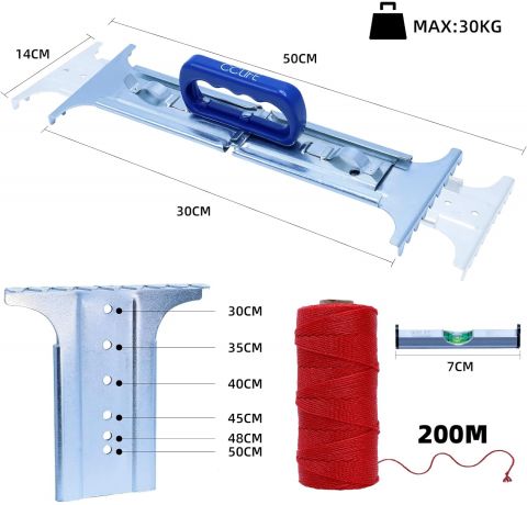 CCLIFE Tile lifter set, plate lifter, carry handle, 30-50 cm, spirit levels and masonry cord for masonry and plaster wor