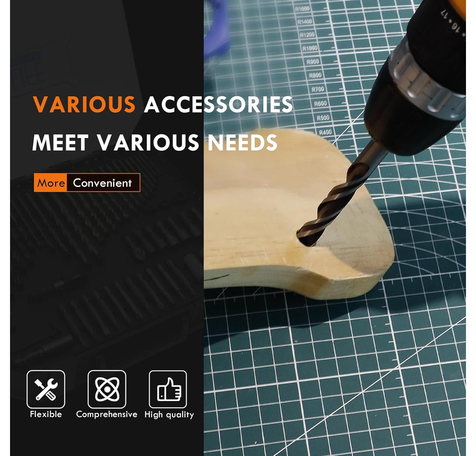 - Premium quality and rust resistant: HSS drill bits are made of high speed steel, reinforced with titanium coating and precision ground for excellent drilling performance; wood and concrete drill bits are made of durable carbon steel, which is rust resistant and suitable for a wide range of construction and maintenance projects.