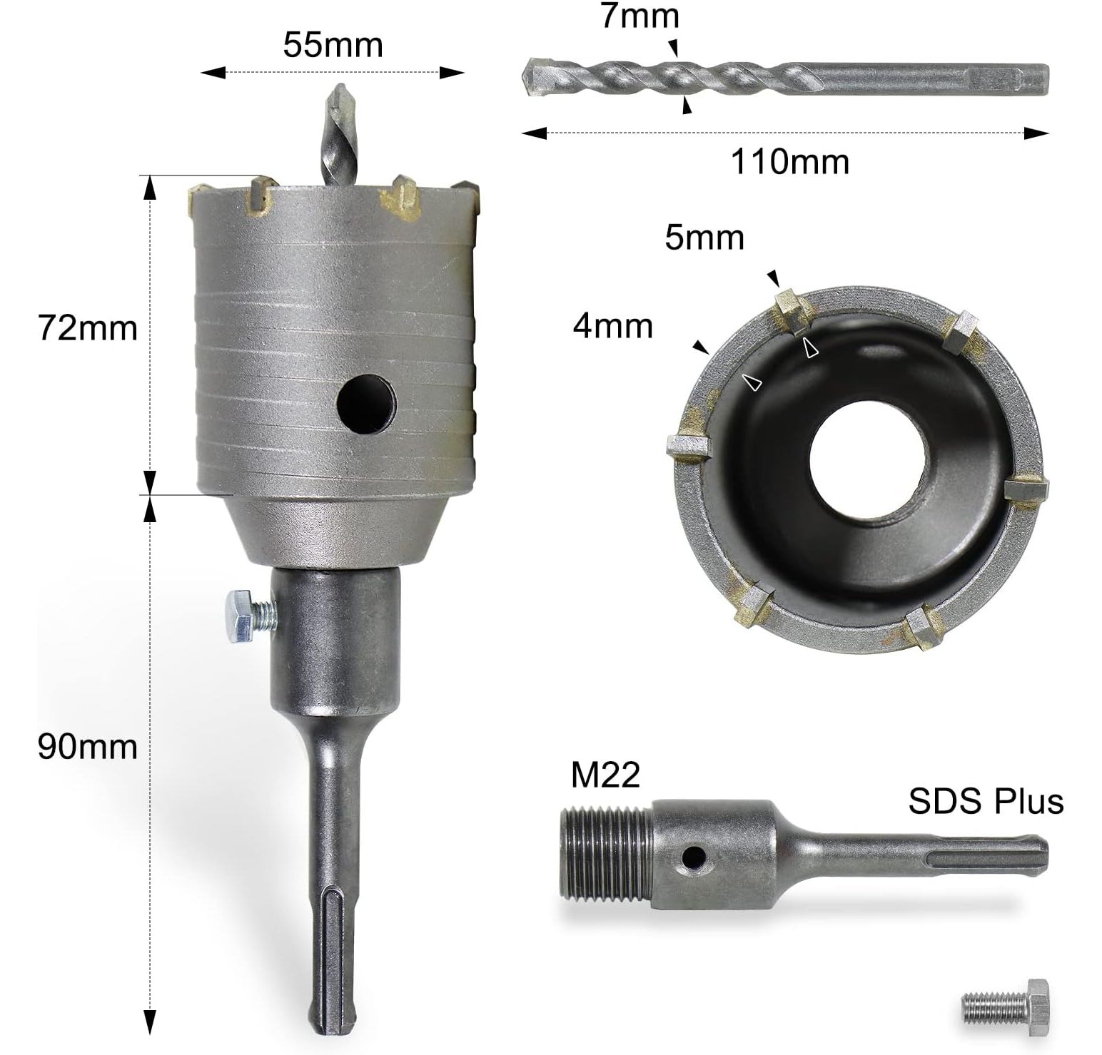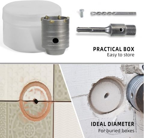 CCLIFE Drill Bit 50/55/65/68/80/82/100 mm Socket Drill Bit Concrete with SDS Plus Adapter Drill Bit Socket for Masonry and Concrete