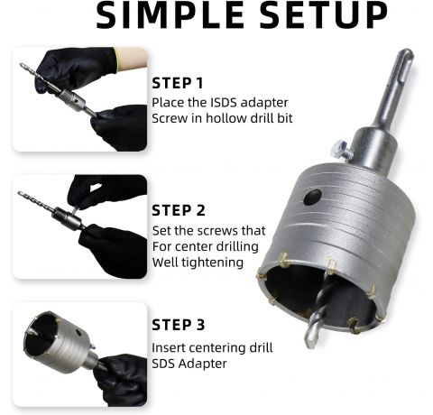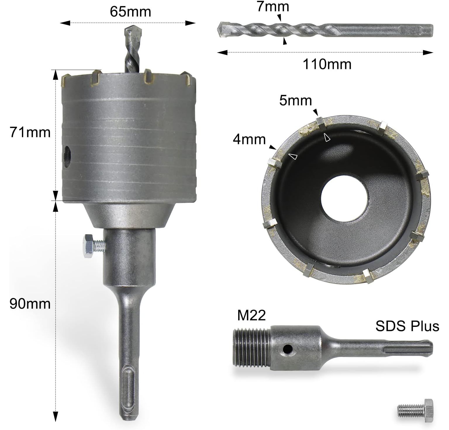 CCLIFE Drill Bit 50/55/65/68/80/82/100 mm Socket Drill Bit Concrete with SDS Plus Adapter Drill Bit Socket for Masonry and Concrete