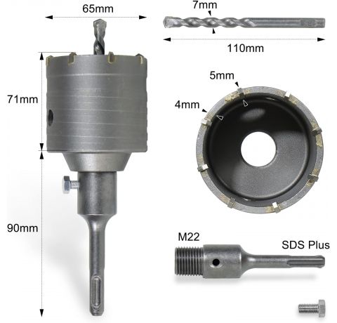 • VARIOUS SIZES Concrete hole saw diameter 50mm, 55mm, 65mm, 67.5mm, 80mm, 82mm, 100mm. Pilot drill length 160mm 350mm