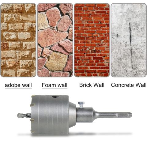 • Wide Application Widely used for drilling clay walls, foam walls, brick walls and concrete walls, or installing hoses, water pipes and exhaust hoses.