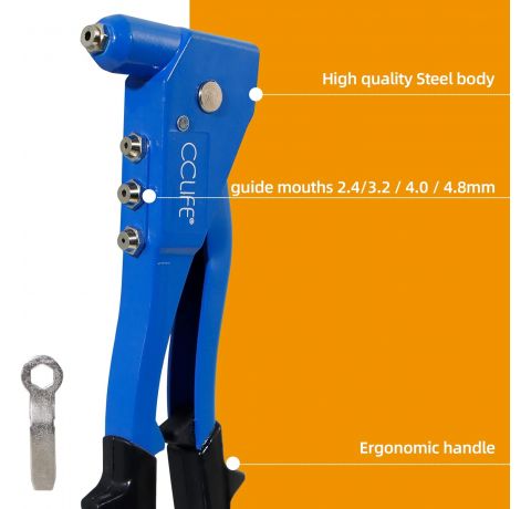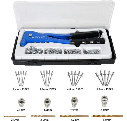 CCLIFE Riveting Pliers Set Blind Rivet Pliers with 60 Blind Rivets 2.4 | 3.2 | 4.0 | 4.8 mm Rivet Pliers
