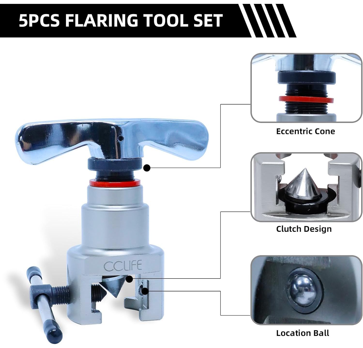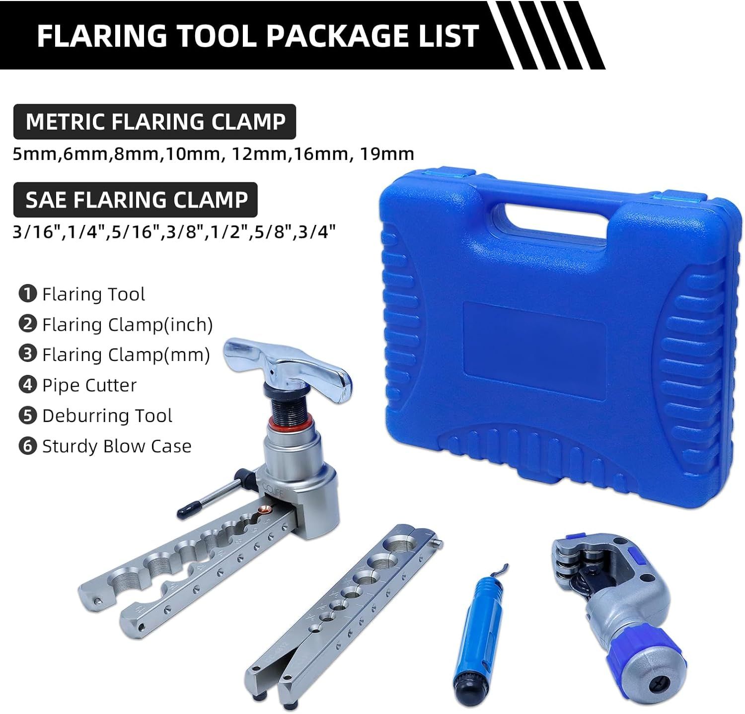 CCLIFE Metric Zöllig Air Conditioning Flaring Tool for R407c/R410a with Pipe Cutter | 5-19 mm | 3/16-3/4 Inch