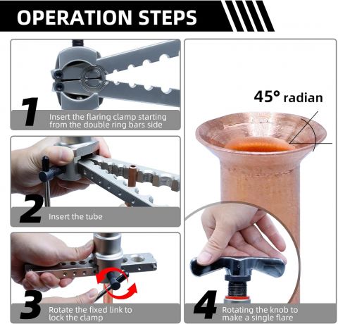 - The tumbling flaring device is suitable for making precision single flanging 45°