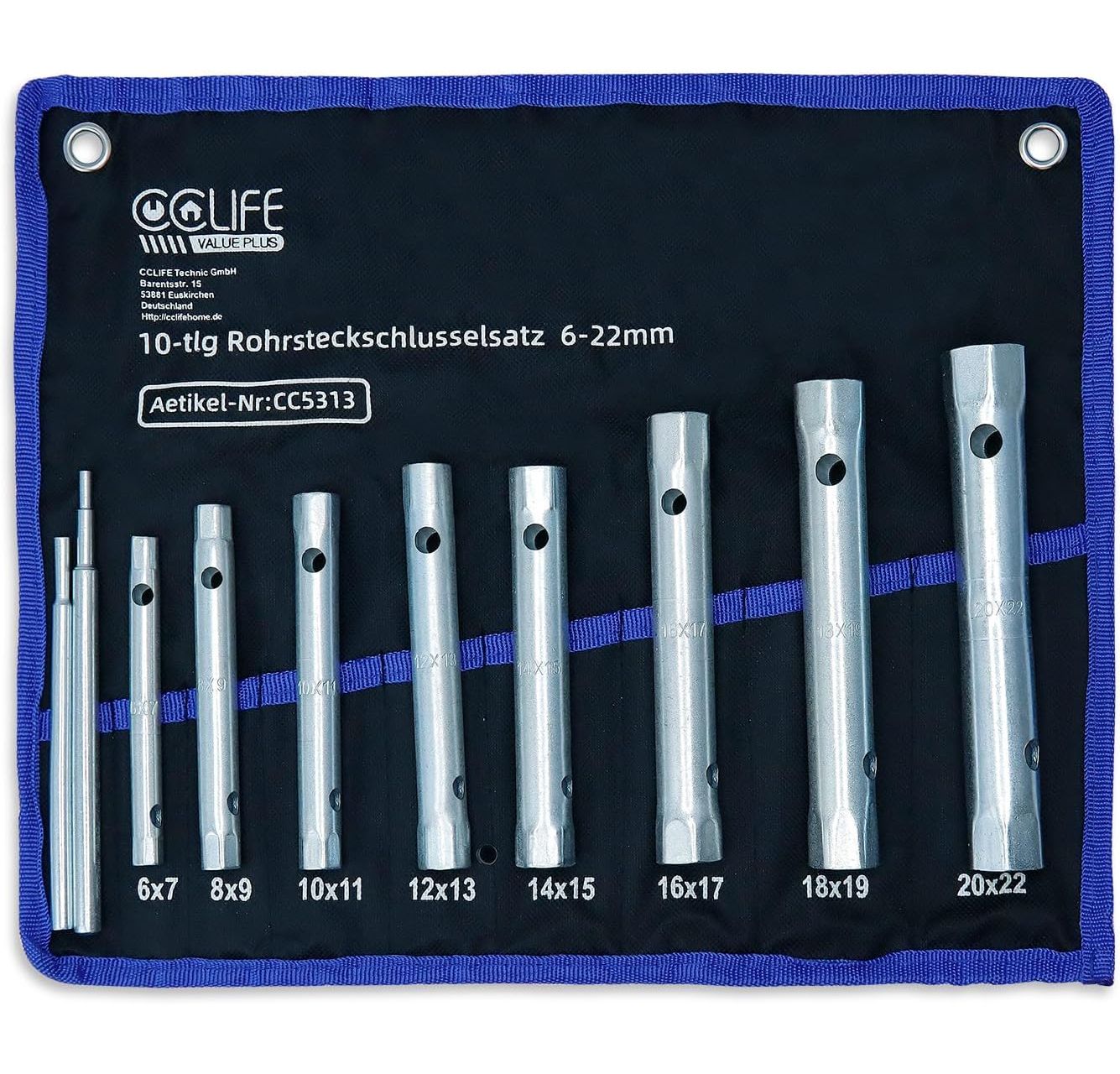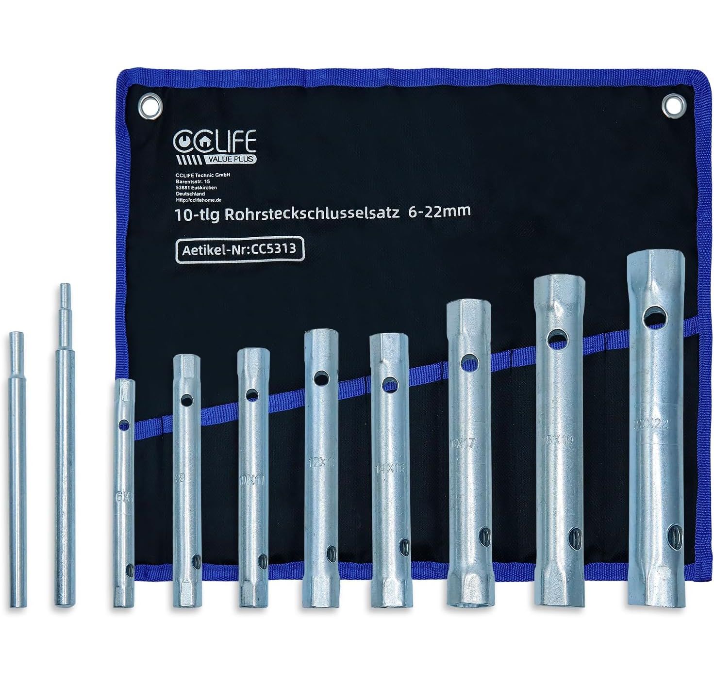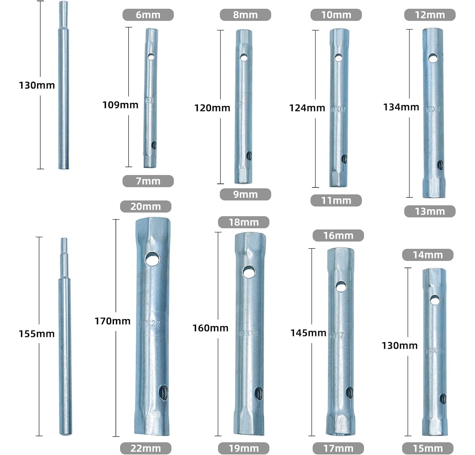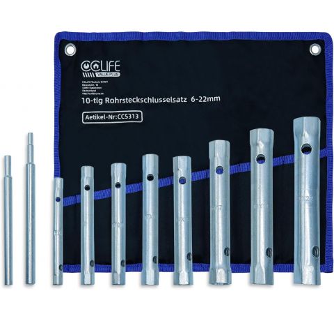 CCLIFE Tubular Socket Spanner Set 10 Pieces 6-22 mm Pipe Socket Spanner Double Socket Spanner for Working on the Tap Spark Plugs