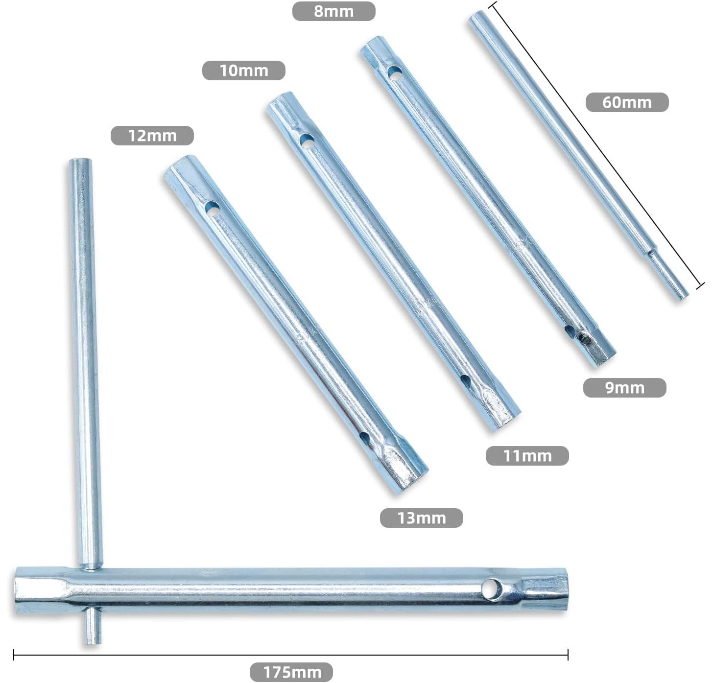 - Material: The tubular box wrenches are made of hardened tool steel, which is particularly robust and can be combined with other wrenches. The surface is matt chrome plated to prevent scratching and damaging the tool.